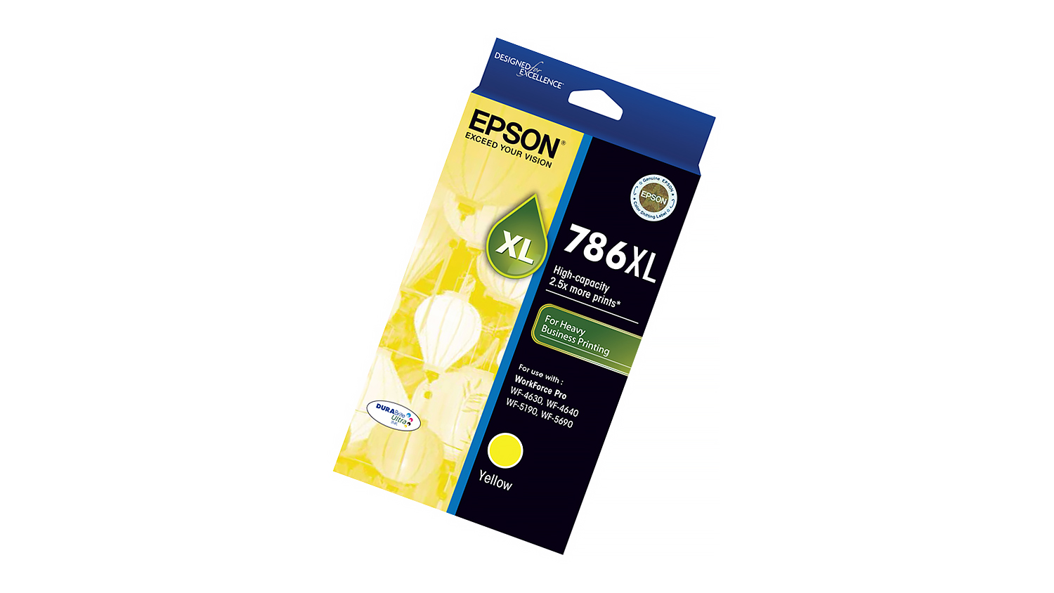 Featuring smudge and fade-resistant ink that incorporates a multi-pigmented DURABrite ink technology, the Epson 786XL DURABrite Ultra Ink Cartridge Yellow ensures to produce vibrantly printed outputs on any paper.