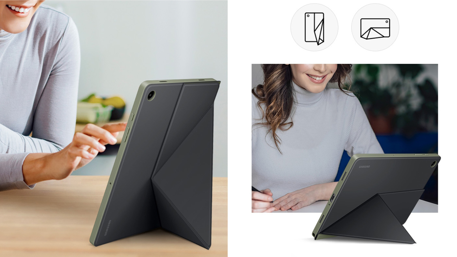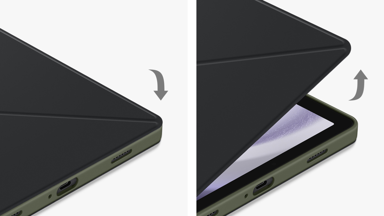 Keep your Galaxy Tab A9+ safe and stylish with the Samsung Book Cover. A handy accessory for busy individuals, this case features a protective cover that safeguards your device against minor bumps and scratches. It also offers versatile viewing angles, so you can enjoy landscape and portrait orientations. Plus, it highlights a convenient auto sleep/wake-up function to help conserve energy.