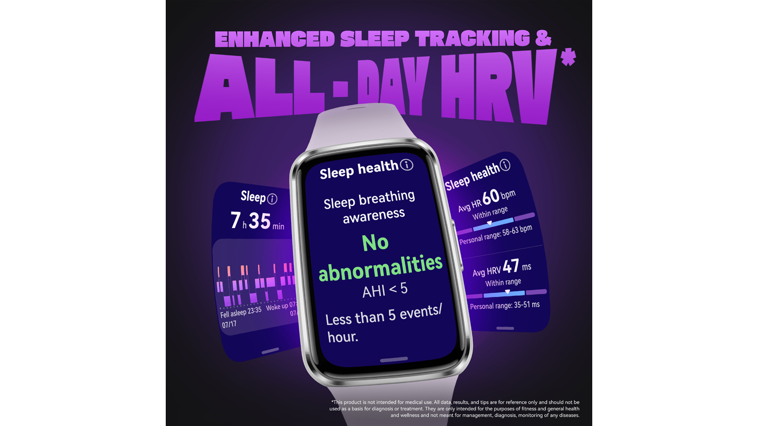 3 This feature will be available via OTA update. This product is not intended for medical use. All data, results, and tips are for reference only and should not be used as a basis for diagnosis or treatment.