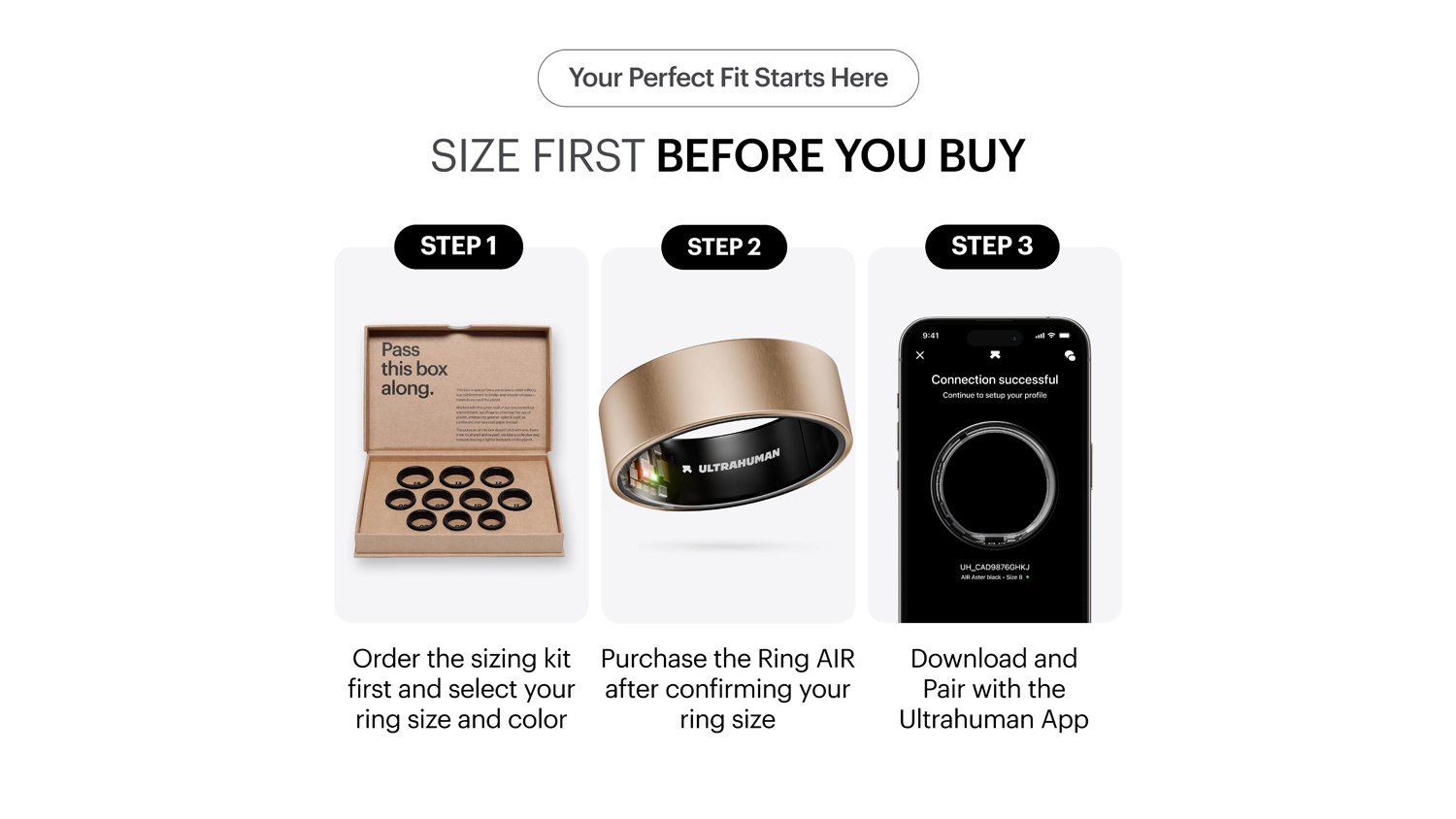 - Find The Perfect Size: To ensure the ideal fit, we highly recommend purchasing the Ultrahuman Ring AIR Sizing Kit before you buy your Smart Ring**.