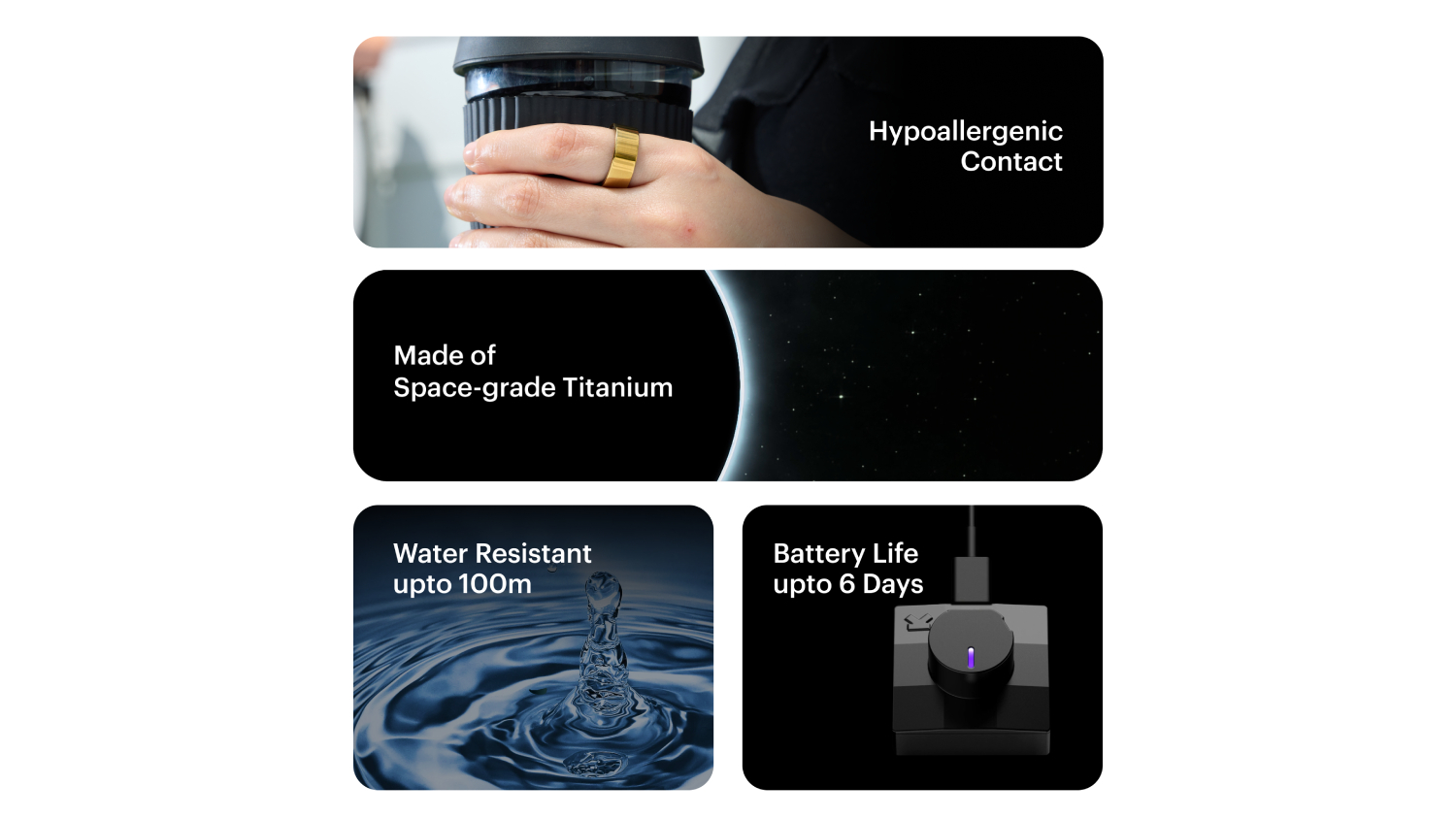 *Ultrahuman Ring Air weighs around 2.4 to 3.6 g (varies with size), which is 11x lighter compared to typical smartwatches.