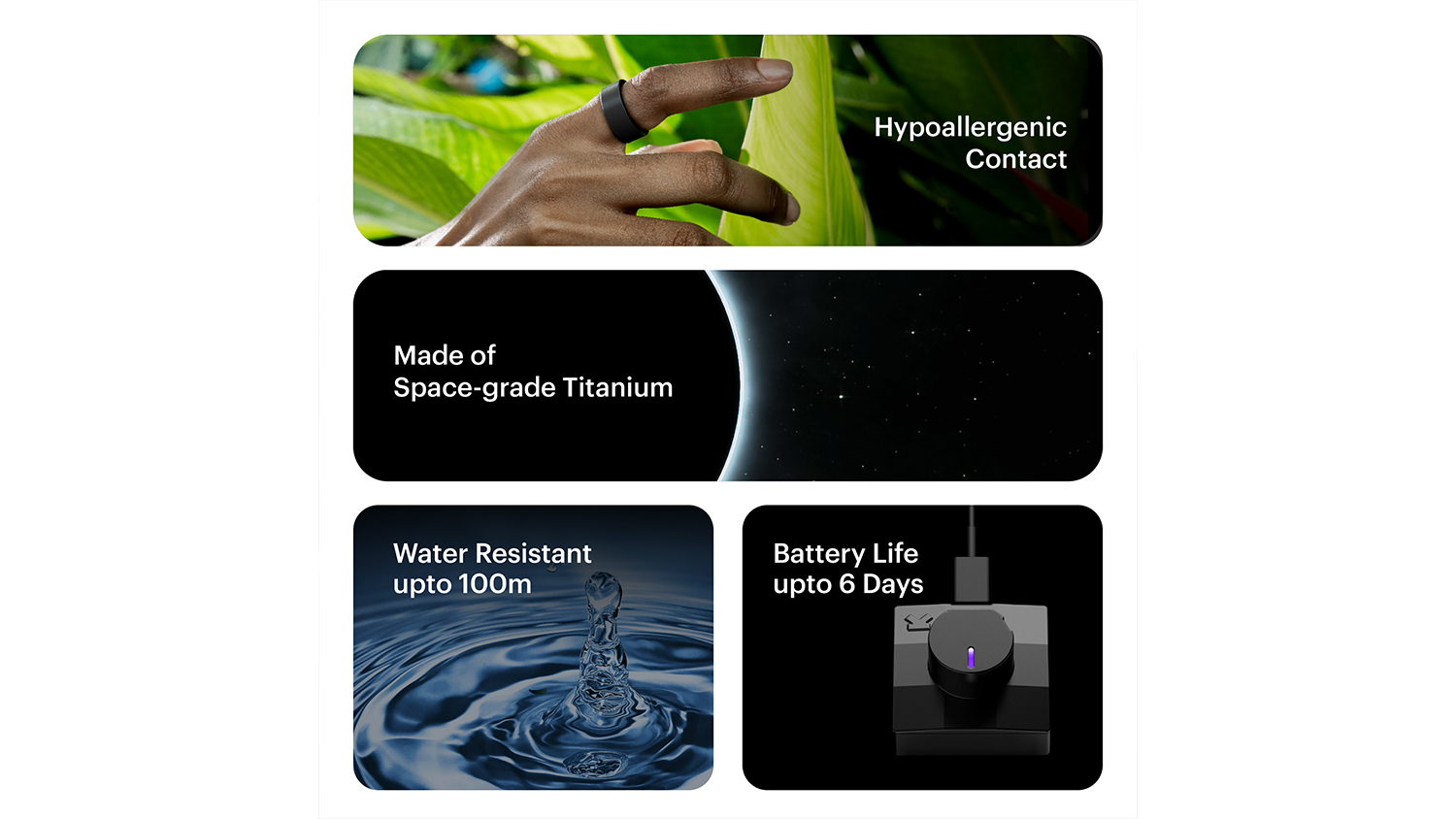 | Charging Method | Standard Ring Charger with USB Type C charging cable |