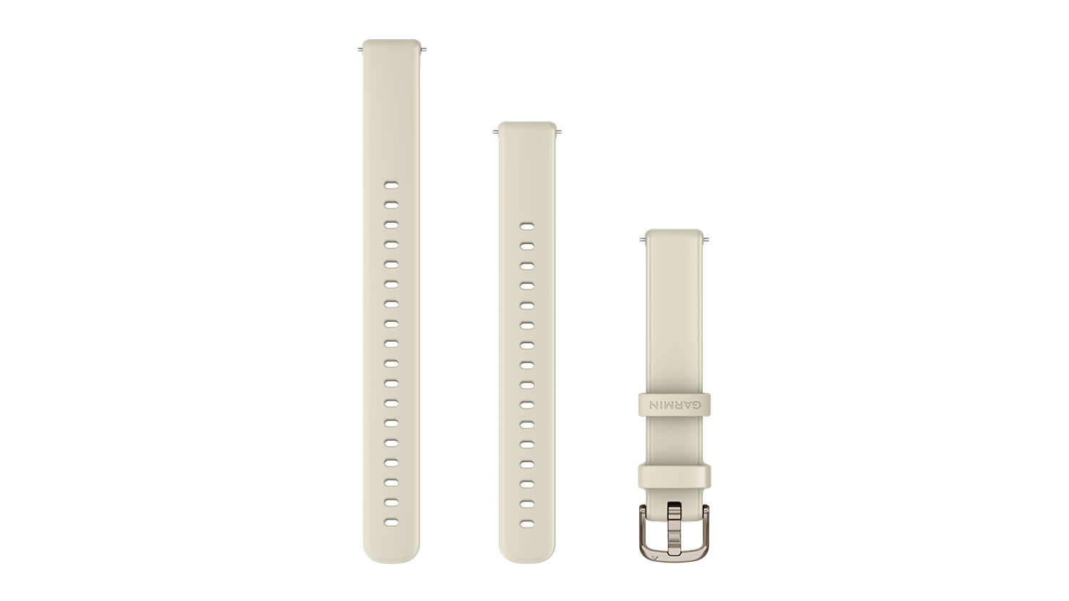 Stay chic and sports-ready with the Garmin 14mm Quick Release Silicone Band! Boasting a stunning Coconut finish with Cream Gold accents, this sleek band is the perfect complement to your Garmin Lily 2 smartwatch. It also offers a screw-on form factor to ensure a secure and comfortable fit. Whether you’re doing high-intensity workouts or having a girl’s night out, this Garmin band will keep you stylish and comfortable at all times.