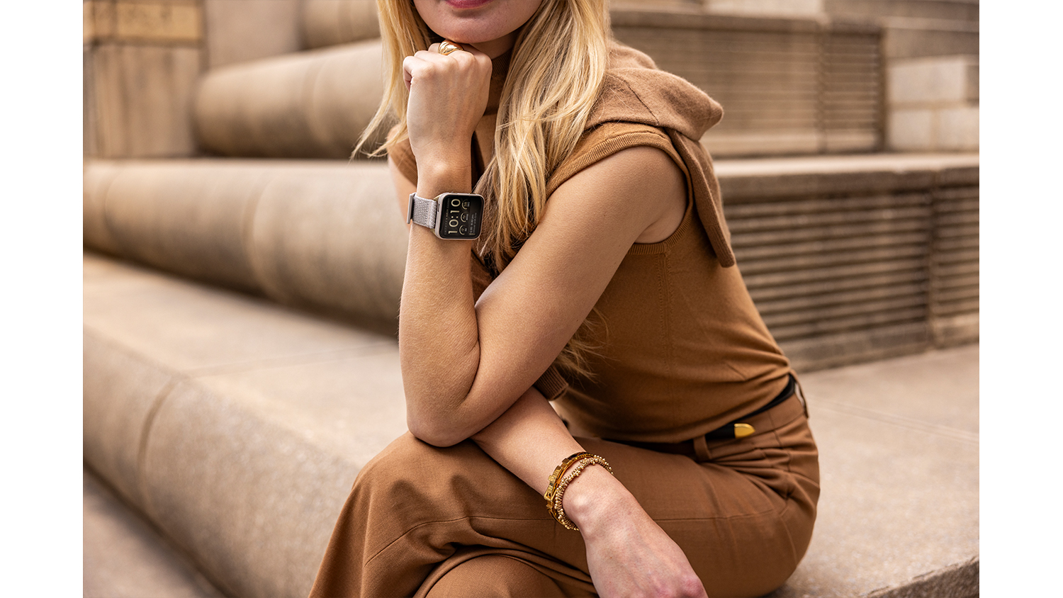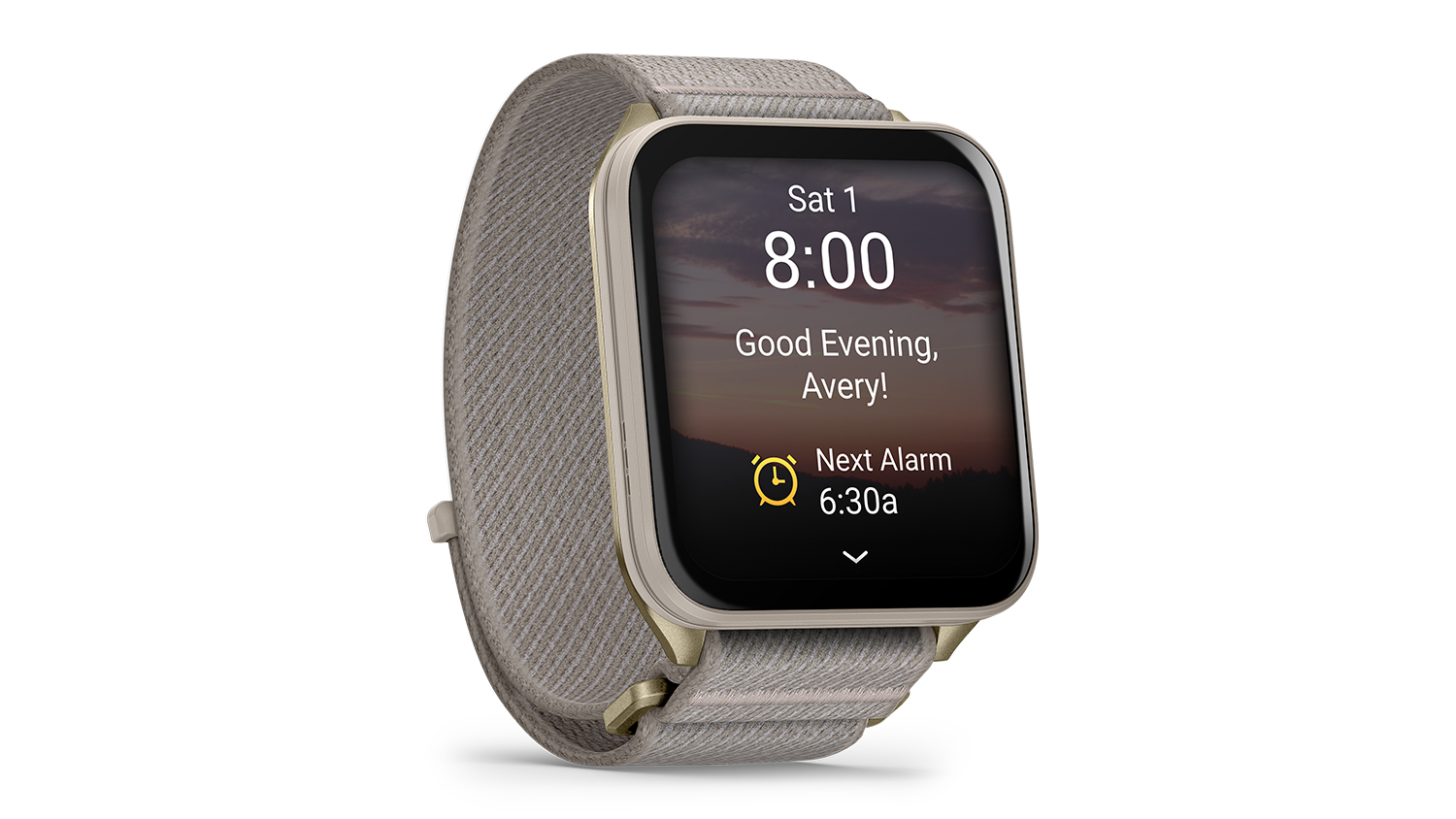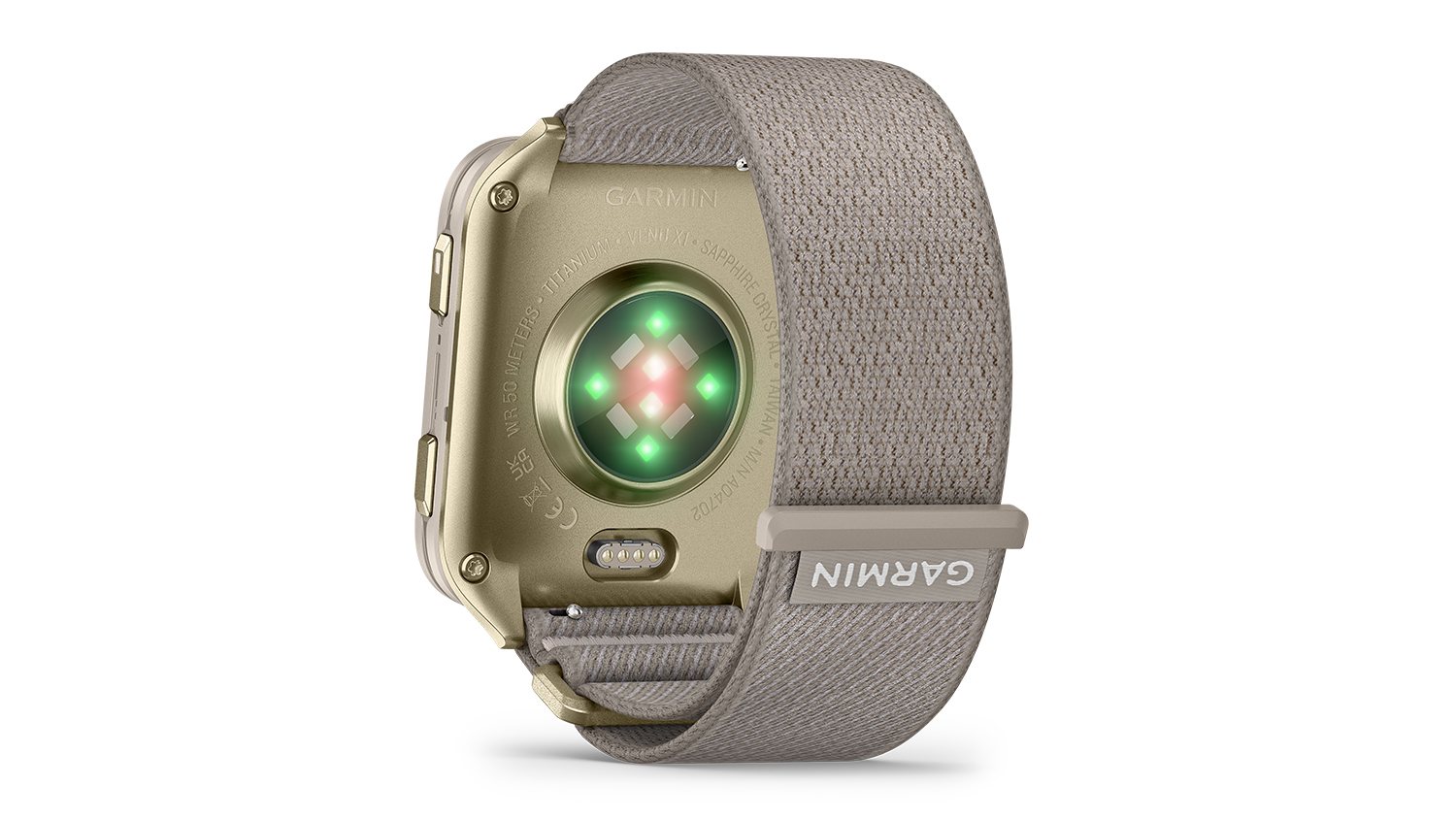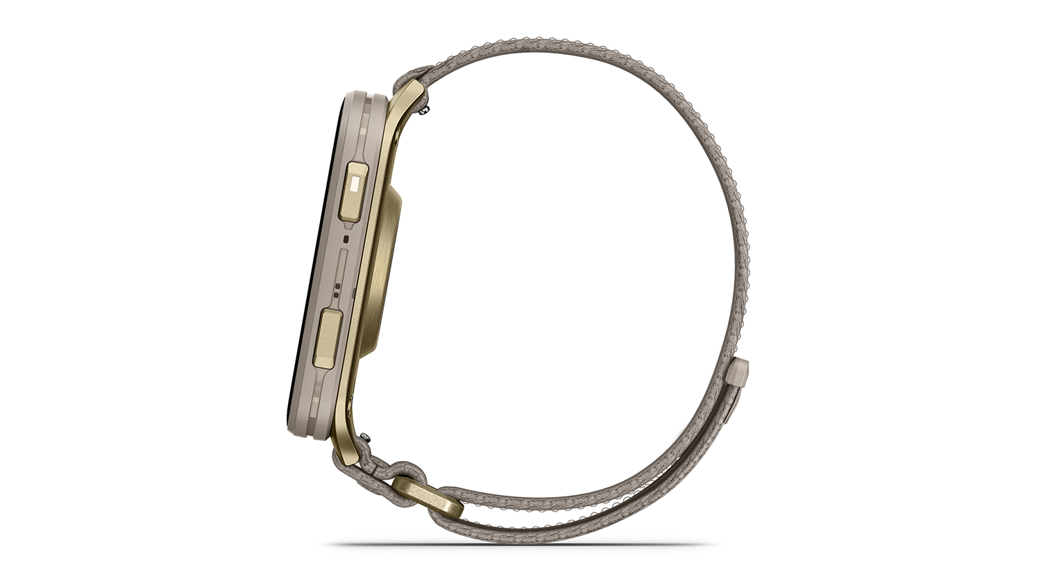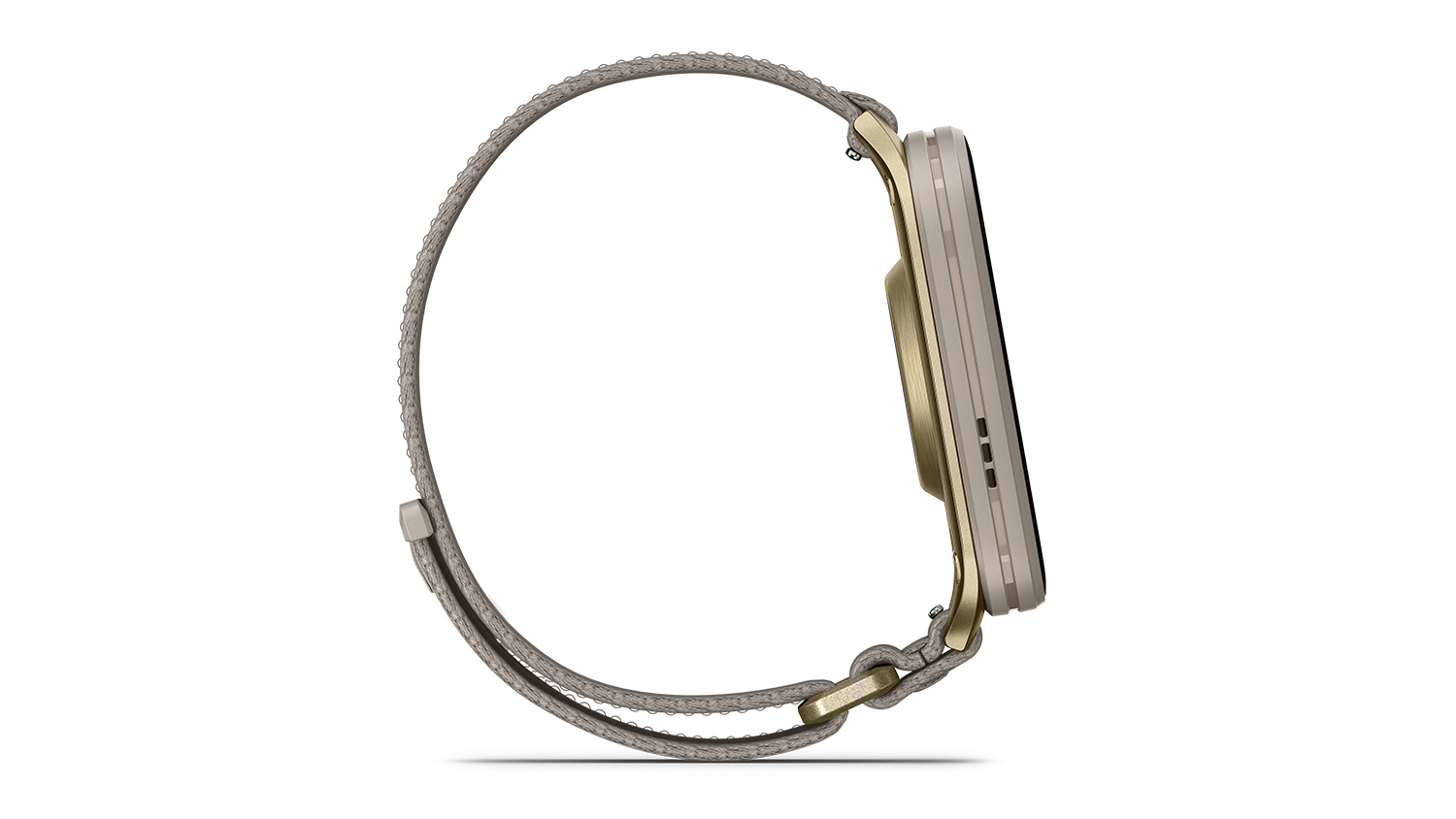 Garmin Venu X1 Smartwatch - Soft Gold with Titanium Caseback and French Grey Nylon Band (41mm Case, GPS, Bluetooth)