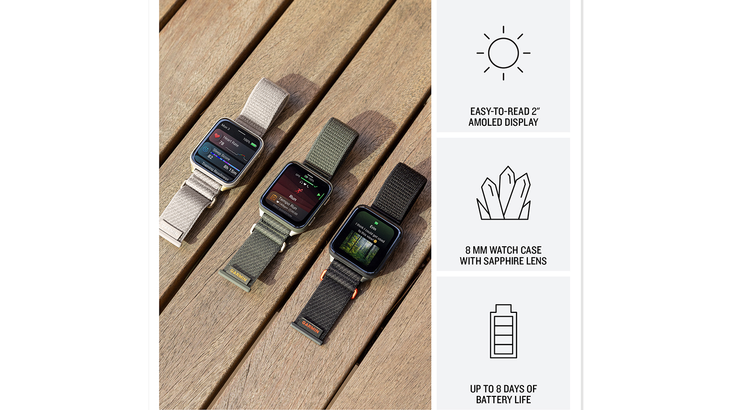 | Battery Life | Up to 8 days (Smartwatch Mode), Up to 16 hours (GPS Mode) |