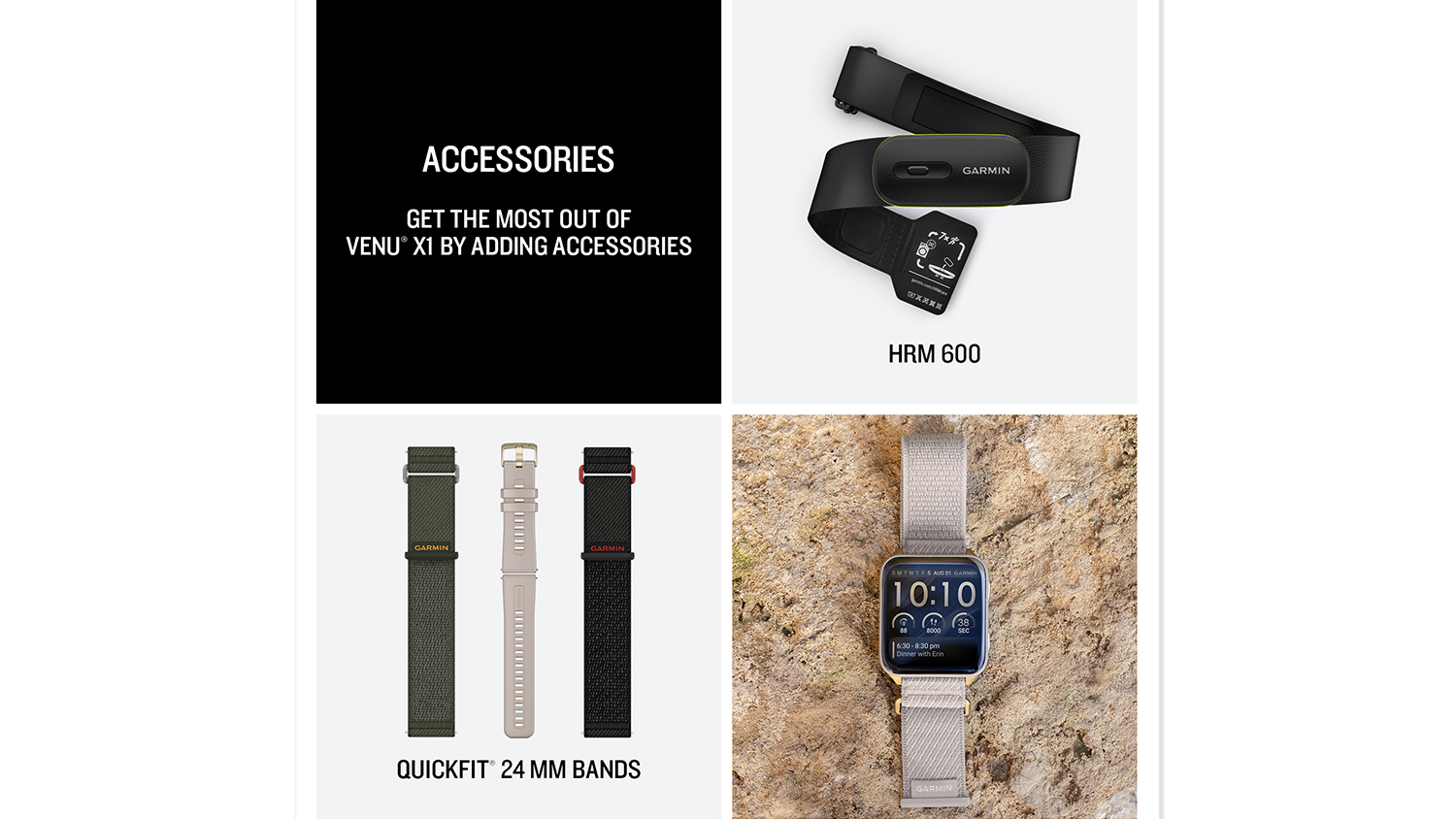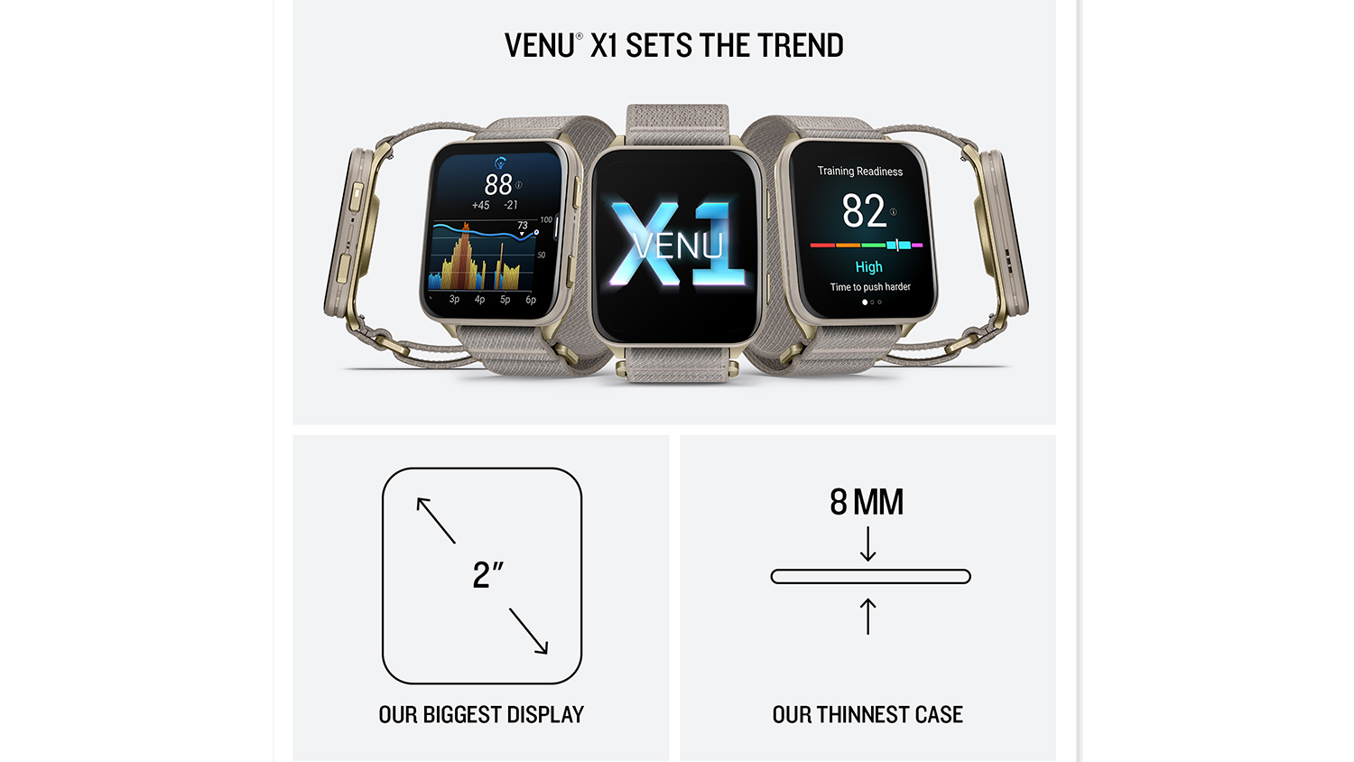 Gear up for health and fitness with the Garmin Venu X1 Smartwatch. Bigger and thinner than ever before, this smartwatch lets you enjoy a larger viewing area without adding extra weight. It also packs advanced monitoring features to help you stay on top of your wellness goals. Plus, it flaunts durable engineering with a scratch-resistant sapphire lens, ensuring it can accompany you as you train, play, work, and explore.