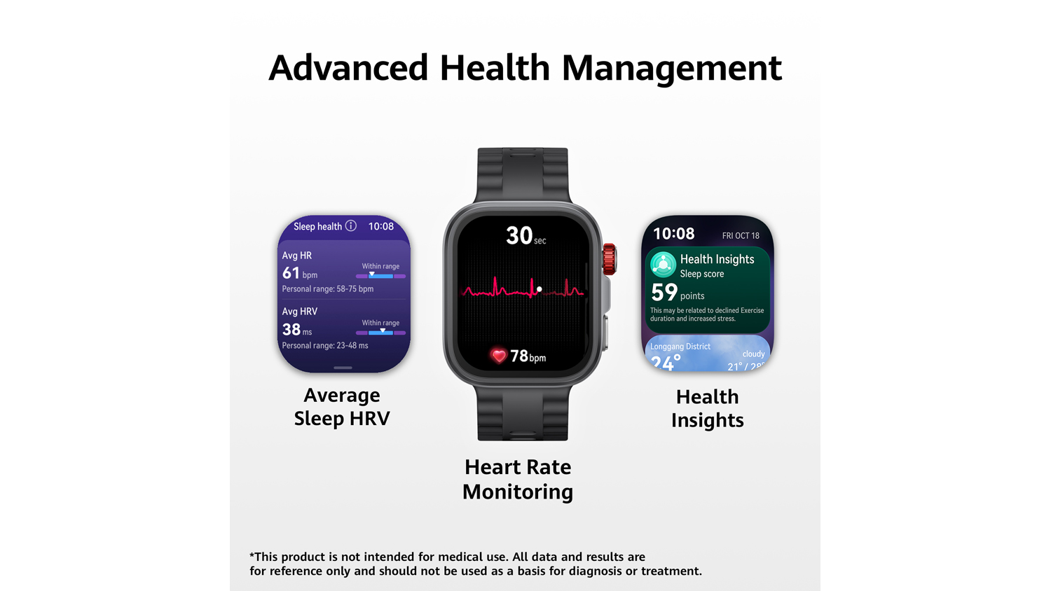 **This product is not a medical device. Therefore, monitoring data and results are for reference only and should not be used as a basis for medical diagnosis or treatment.