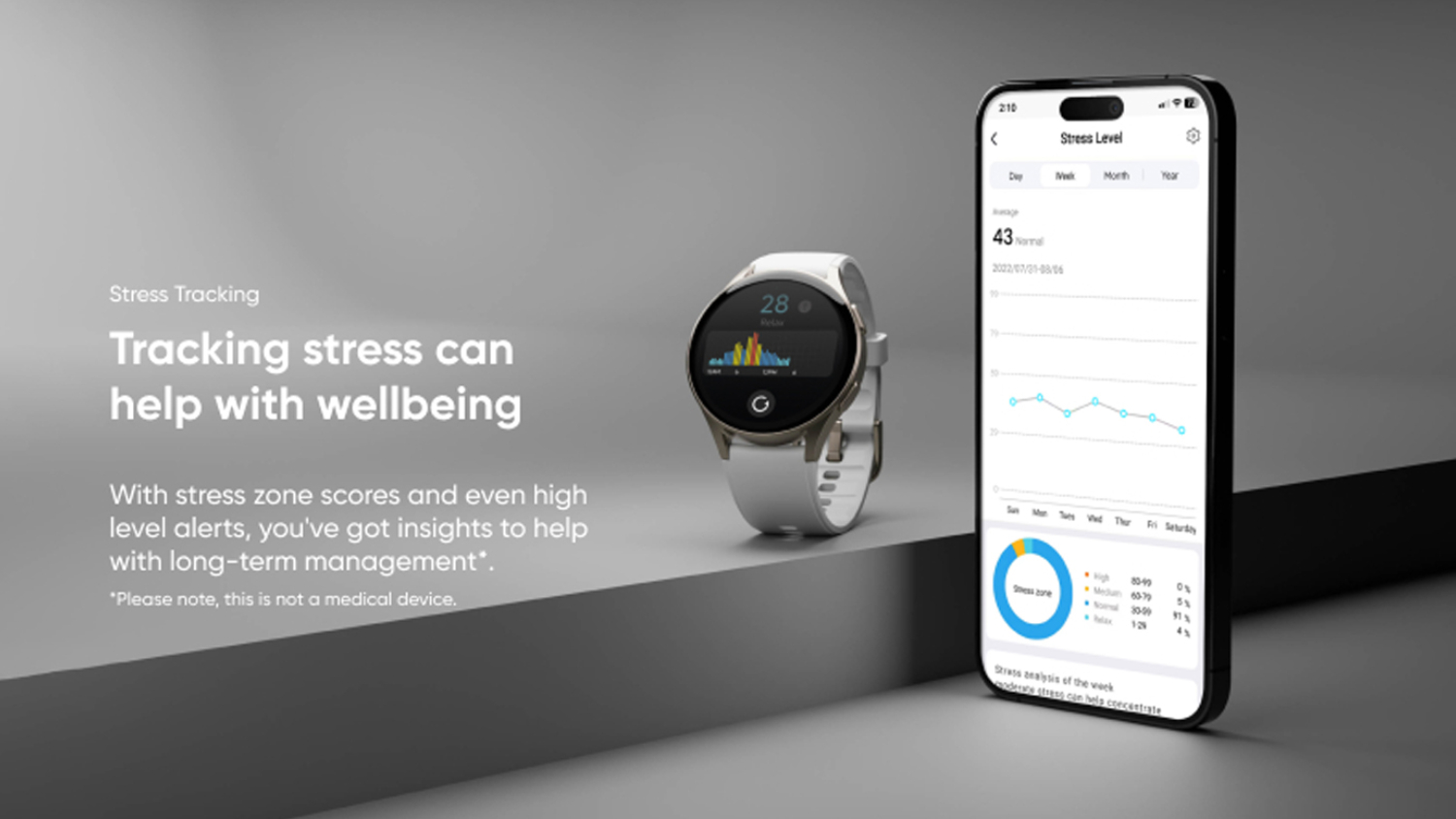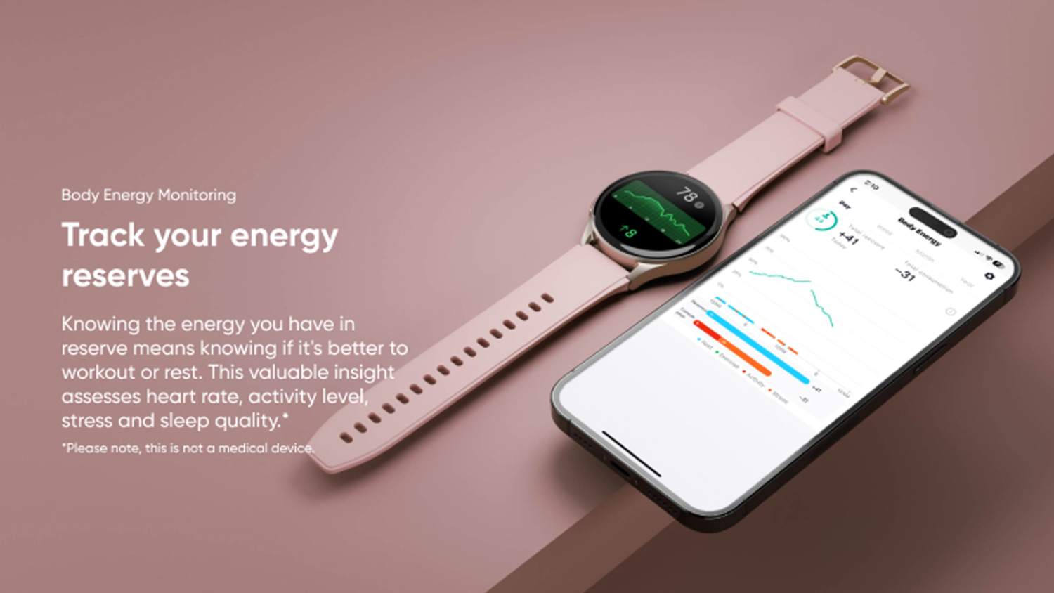 Optimise your active lifestyle with the help of the Ryze Gene SmartWatch! Built to support your well-being, this innovative watch packs an array of monitoring features to help you keep track of your workouts, heart rate, sleep, stress levels, and body energy. It also offers an Event Reminder and Pomodoro Timer for managing your daily routines. Plus, it flaunts a modern design that seamlessly blends into your ensembles.