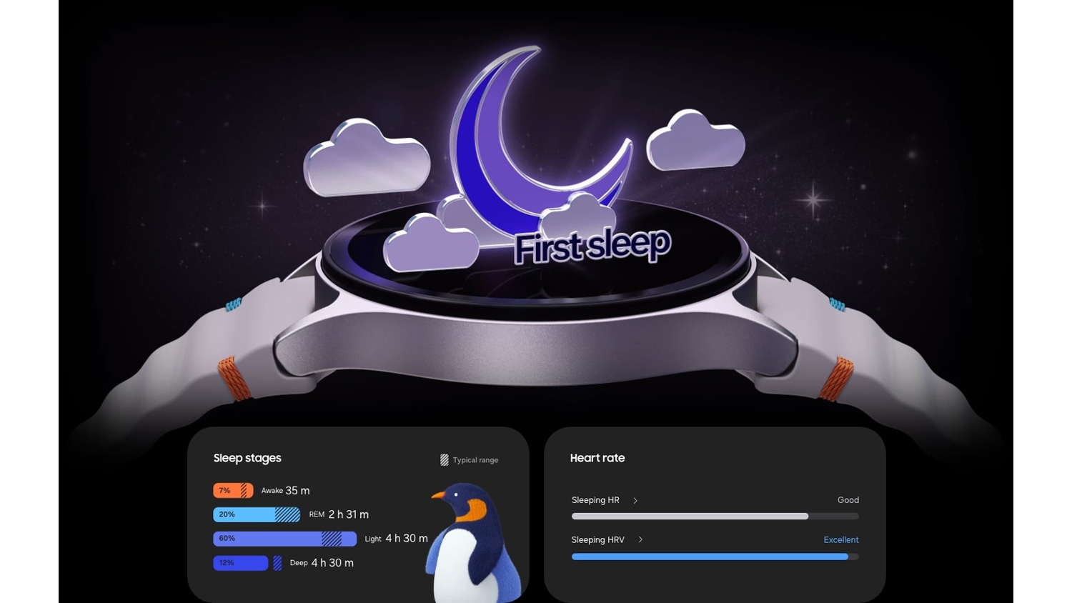 2 Requires Samsung Health application version 6.24 or later. Galaxy Watch7 must be paired with a Samsung Galaxy smartphone with Android 11. Sleep tracking features are intended for general wellness and fitness purposes only. Not intended for use in detection, diagnosis, treatment of any medical condition or sleep disorder. The measurements are for your personal reference only. Please consult a medical professional for advice. Sleep Coaching requires sleep data of at least 7 days, including 2 days off.