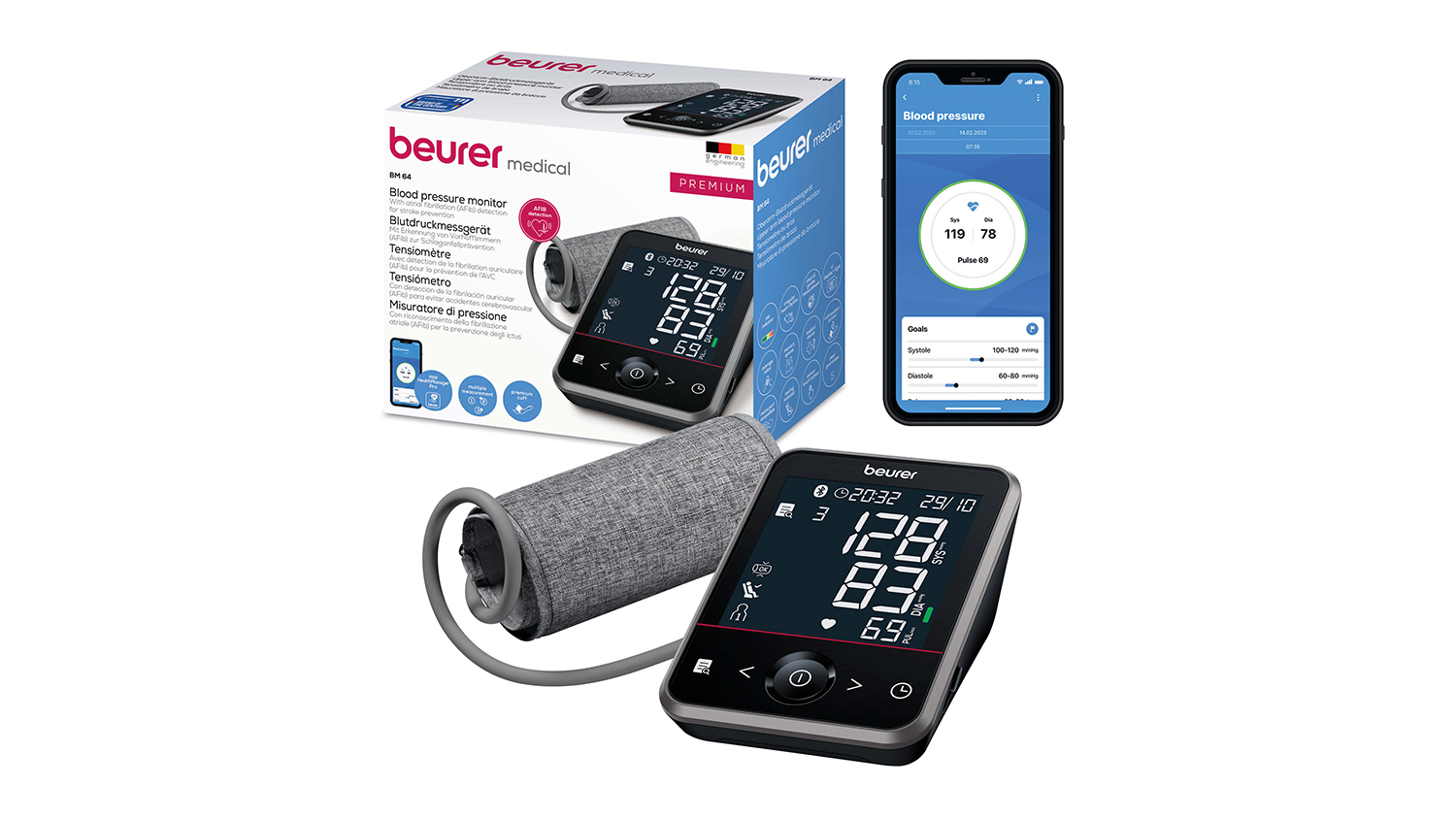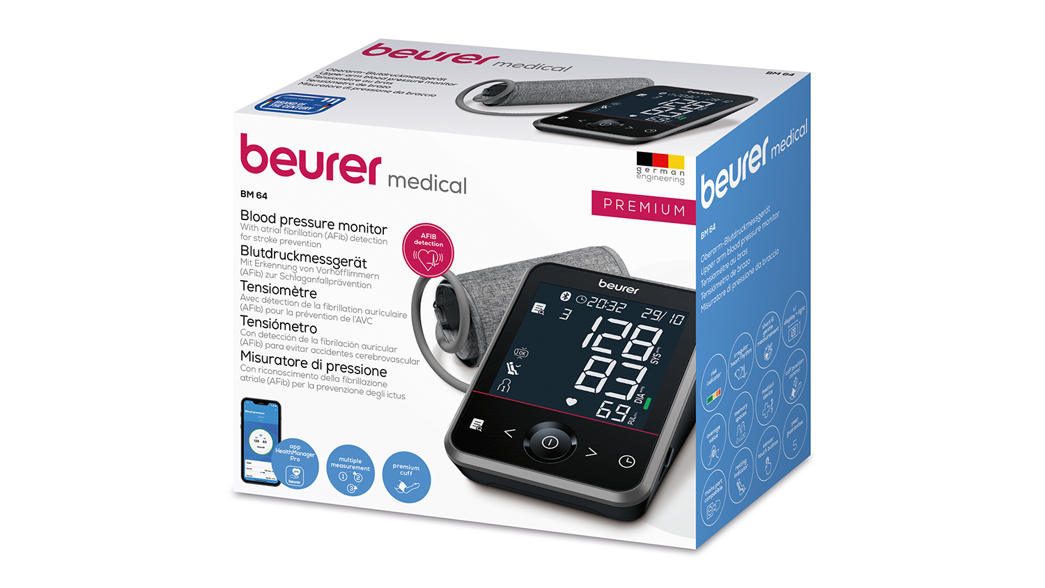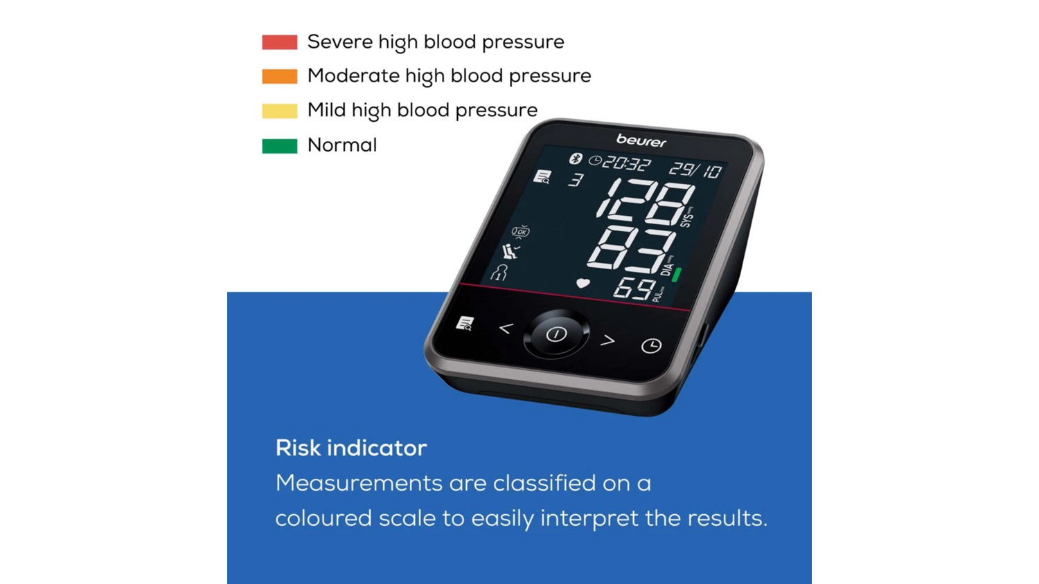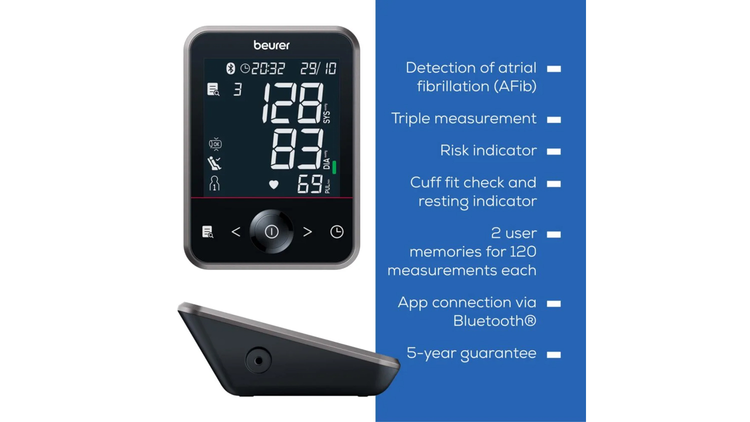 Stay on top of your health with the Beurer BM64 Bluetooth Upper Arm Blood Pressure Monitor. With Inflation Technology, this smart device delivers accurate readings on demand. It also features Advanced Arrhythmia Detection, a Risk Indicator, triple measurement, cuff fit check, and a clear XL display for easy tracking. Plus, you can sync your data effortlessly on the Beurer HealthManager Pro app.