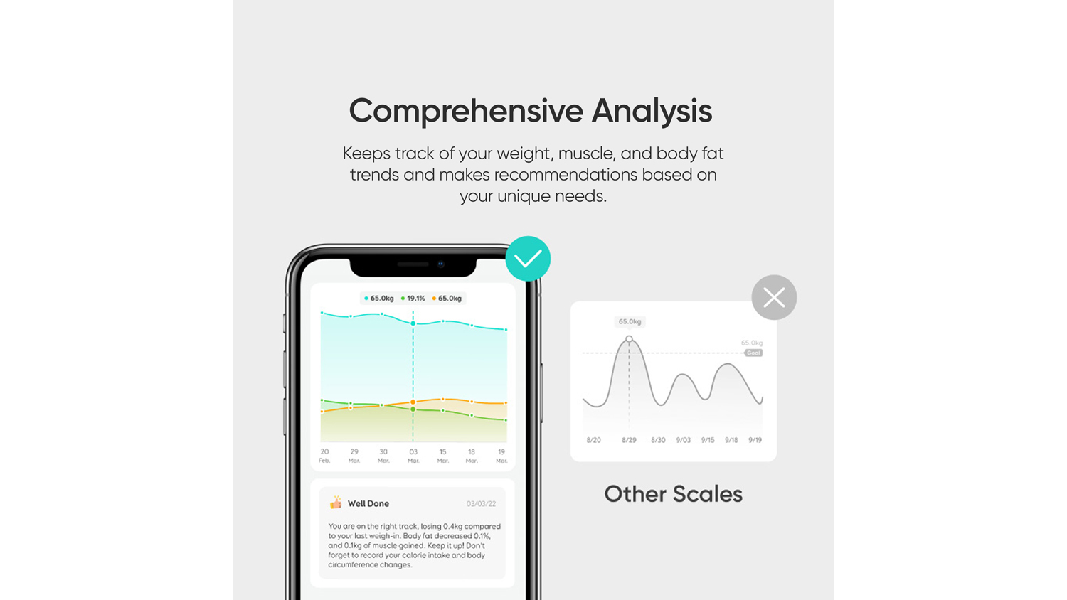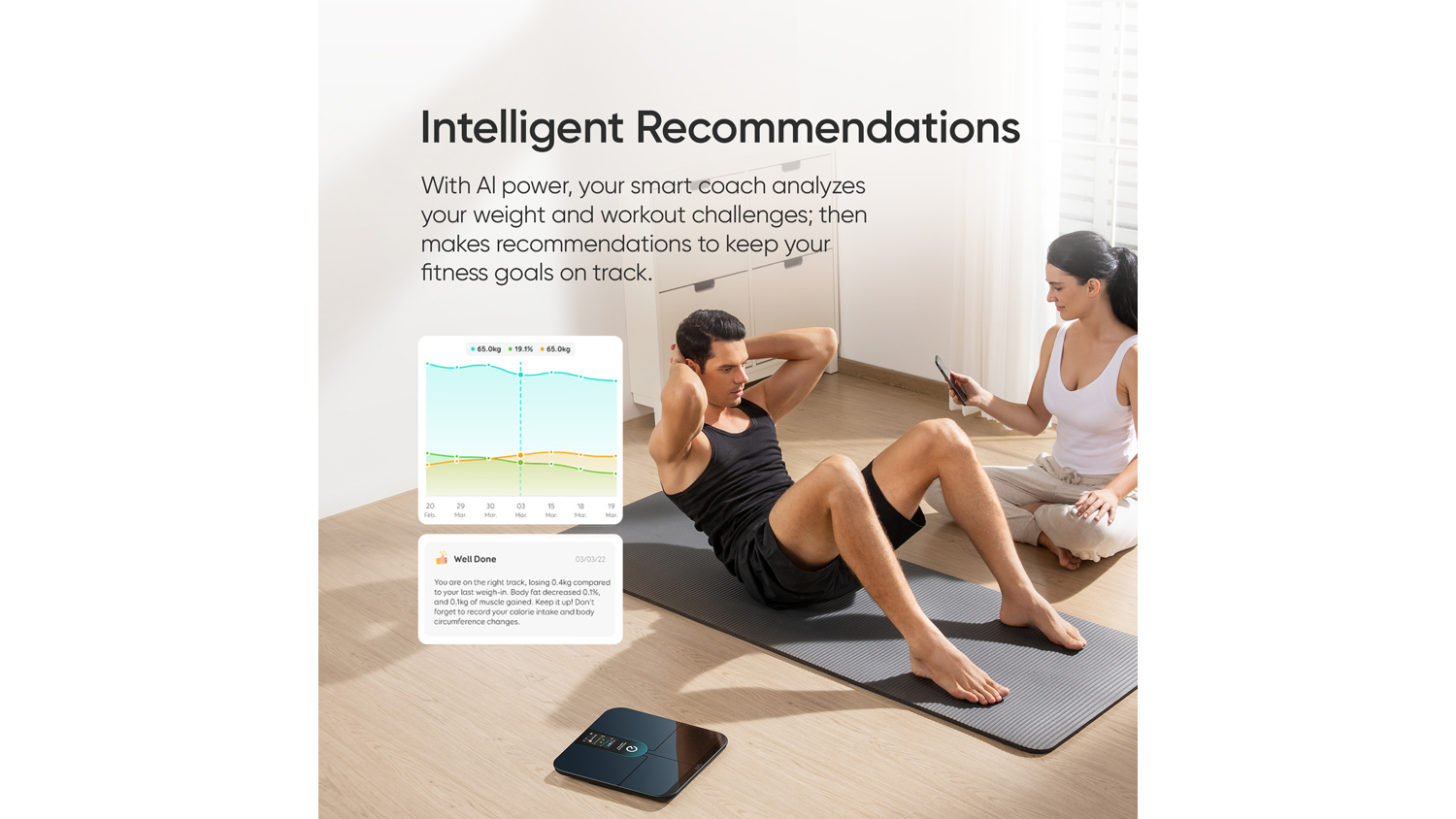 - User-friendly Features: The Eufy Scale features an anti-rollover strip for stability and a rounded glass top to eliminate sharp corners. Plus, its intuitive interface lets you track progress by week, month, or year.