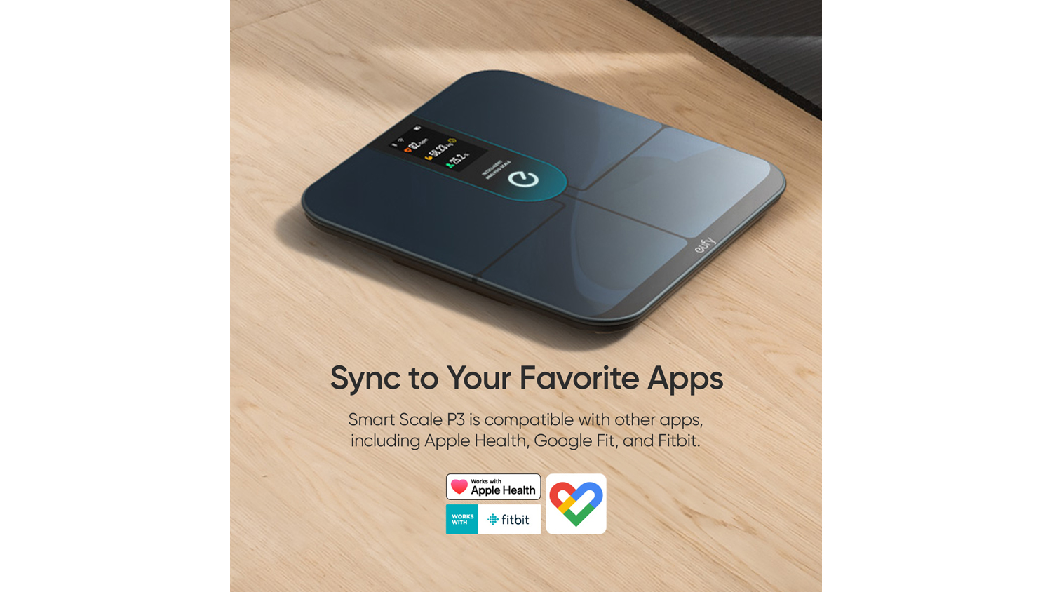 - Companion Apps: Download the EufyLife app to track your fitness journey with personalised plans, progress history, and customisable stats. The Eufy P3 Smart Scale syncs seamlessly with Apple Health, Google Fit, Fitbit, and more for effortless tracking.