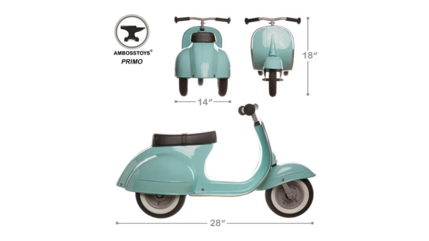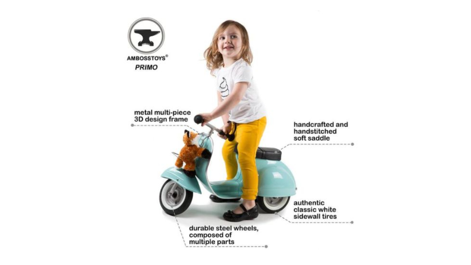 Let your little one cruise around in style with the Ambosstoys Primo Ride-On Scooter! This retro-inspired scooter features a durable powder-coated frame, a comfy leather seat, and cool aluminium trim for an extra vintage touch. Self-propelled for active play, it's the perfect way for children to develop motor skills and coordination.