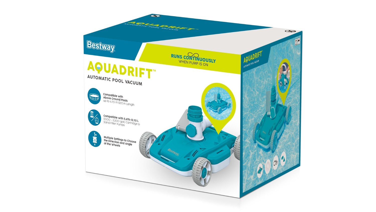Say goodbye to the hassle of manual pool cleaning! The Bestway AquaDrift Automatic Pool Vacuum does the dirty work for you. With its water-propelled design, this hands-free cleaner moves effortlessly across your pool floor, sweeping up dirt, leaves, and sand before they clog your filter. Easy to use and retrieve, it features anti-slip multidirectional wheels and three adjustable settings for optimal coverage. Just connect it to your filter pump, sit back, and enjoy crystal-clear water all season long. Compatible with above-ground pools up to 6.70m in diameter.