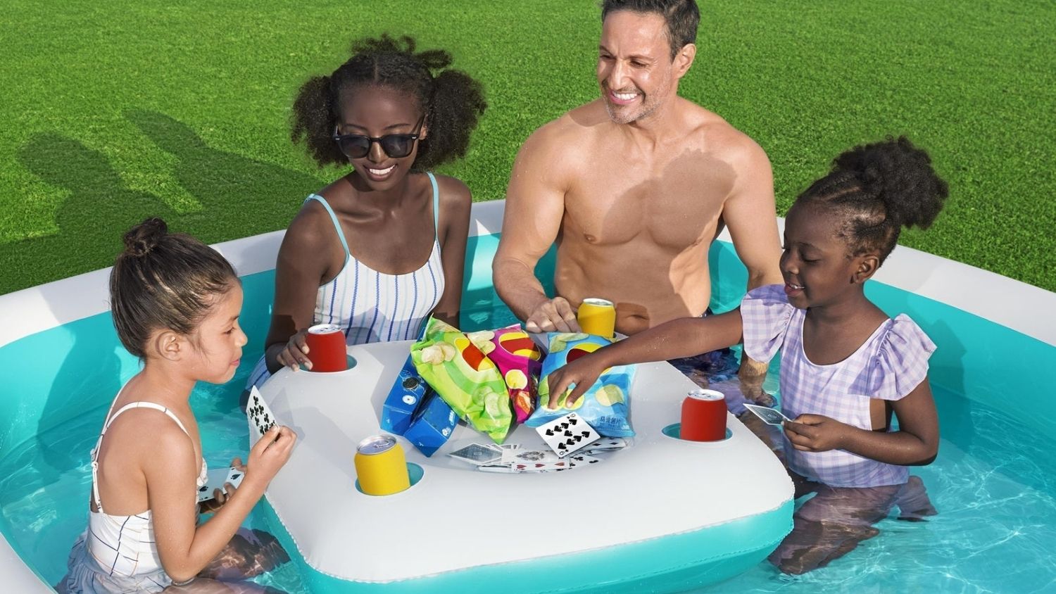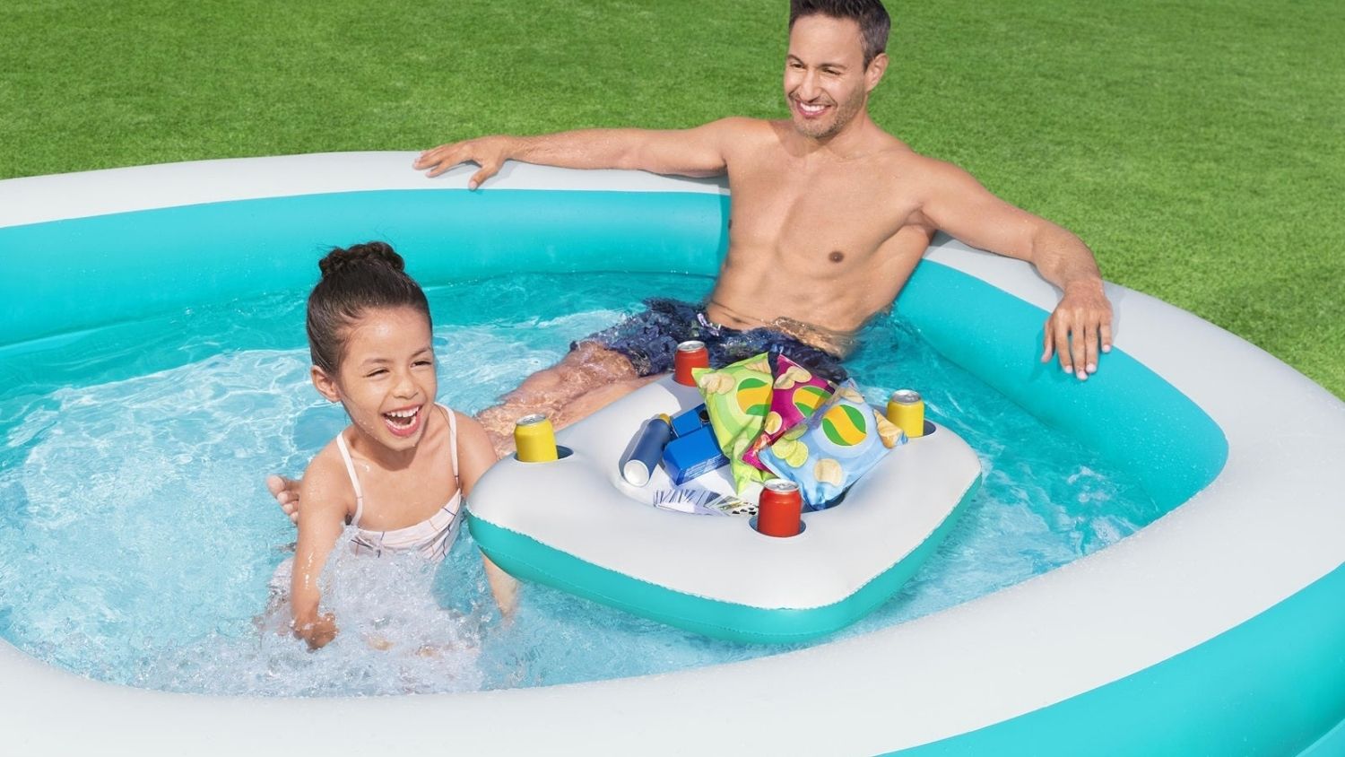 Make sunny days even sweeter with the Bestway Sippin’ Summer™ Family Pool! This spacious 2‑metre‑wide pool is perfect for families with kids ages 6 and up. Stretch out, cool off, and enjoy your favourite drinks thanks to the inflatable centre console with 4 built‑in cup holders. Use it for snacks, other essentials, or as a flat surface for games—then remove it and take the fun outside the pool. When you’re done, simply drain, fold, and store. Easy, refreshing, and ready for endless summer moments!
