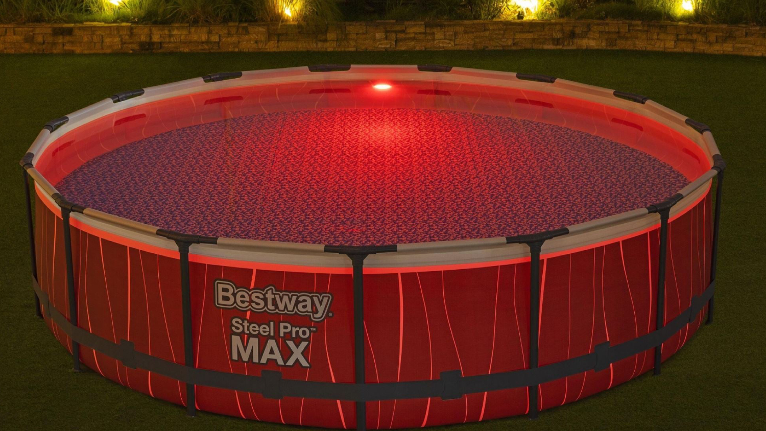 Brighten up your summer with the Bestway Steel Pro Max Above Ground Round Pool with LED Lighting. This pool features customisable LED lighting with 7 colours and multiple modes, Plus, it features a strong steel frame with easy ClickConnect System™ and a durable DuraPlus liner for years of fun. Enjoy easy setup, lasting durability, and a vibrant, personalised pool experience!