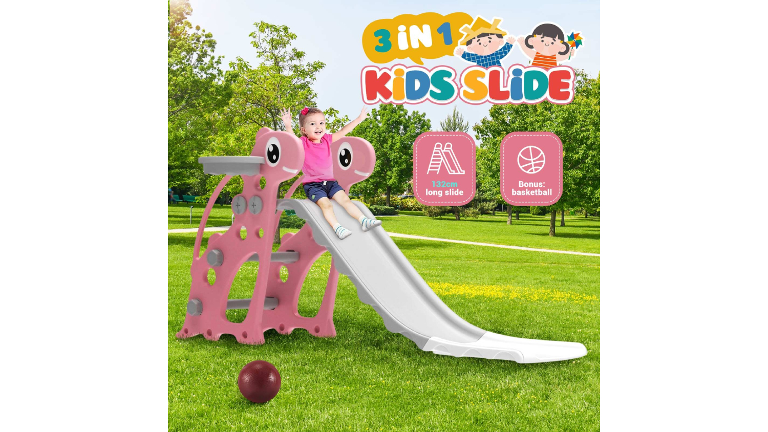 Kidbot 3-in-1 Children's Outdoor Slide Set - Pink