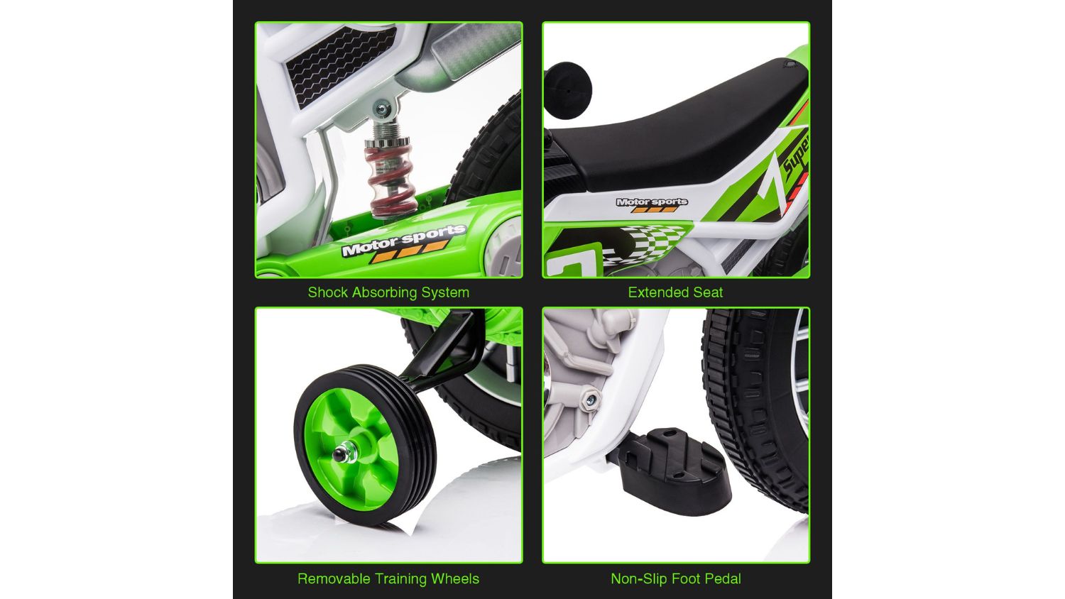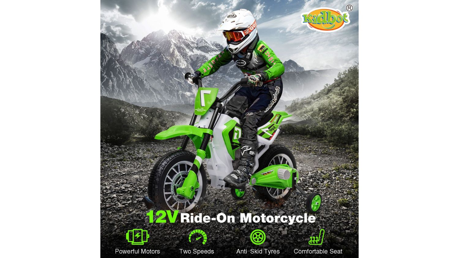Let your little rider cruise in style with the Kidbot Ride On Motorbike 12V. This battery‑powered electric motorcycle is designed for kids aged 3 and up, helping build balance, coordination, and confidence while they play. With durable PP and metal construction, two anti‑skid tyres, and training wheels, it’s made for safe adventures. A powerful 12V battery delivers up to 60 minutes of fun-filled riding.