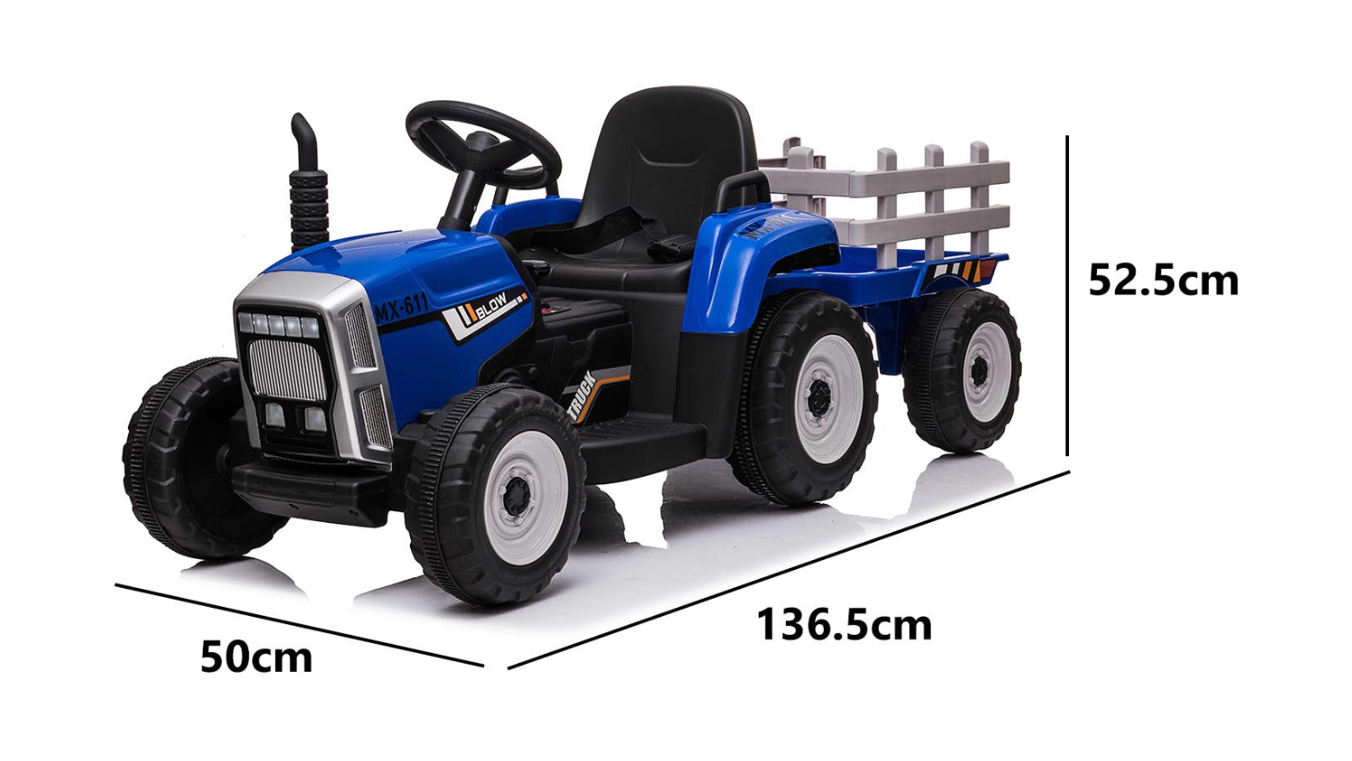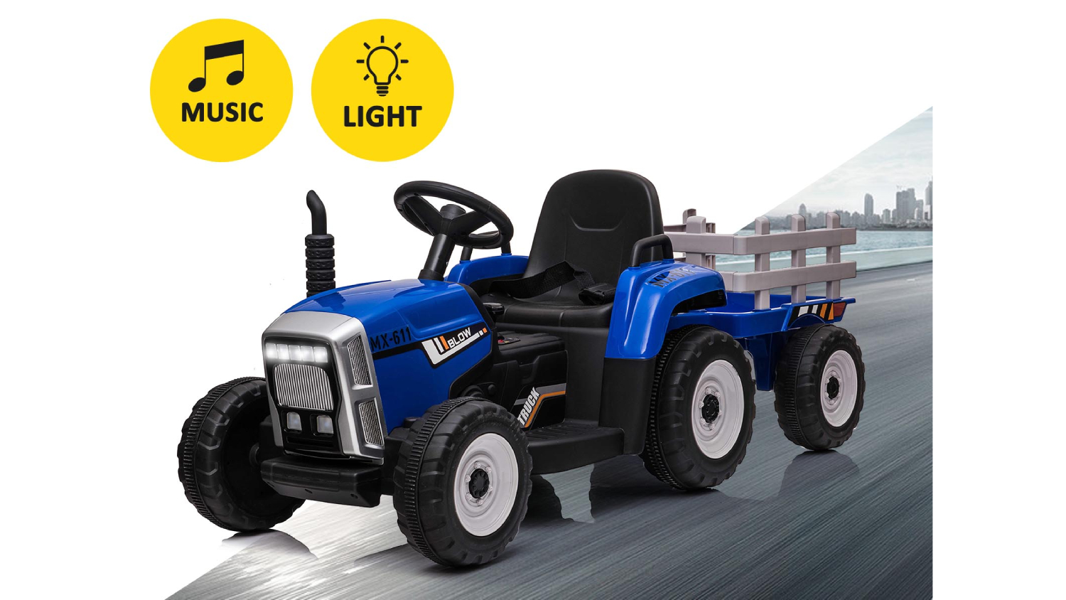 TSB Living Kids' Ride-On Tractor with Trailer, Music, Lights - Dark Blue