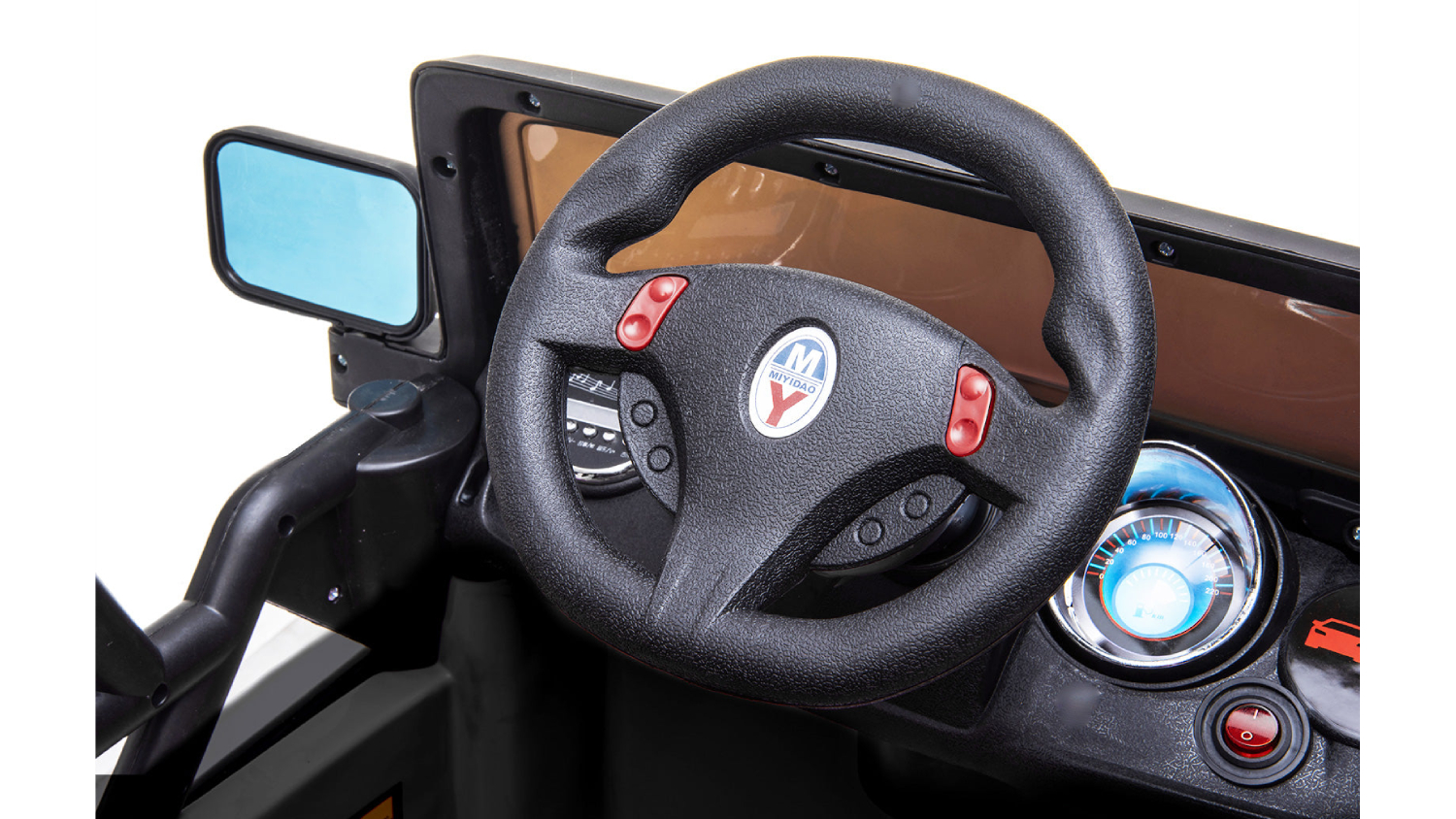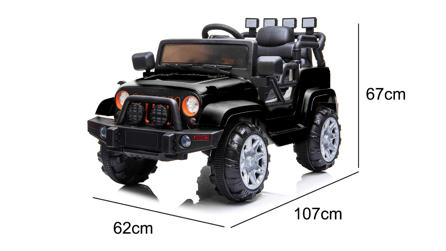 Your child will love cruising around with the TSB Living Ride On Car Elevated 4WD Off-Roader! Packed with features like all-wheel suspension, a soft speed system, workable doors, and a sports seat with a safety belt, this jeep-inspired vehicle offers an authentic riding experience. Enjoy safe, controlled fun with the remote control, and add to the excitement with flashing lights, horn, and MP3 connectivity.