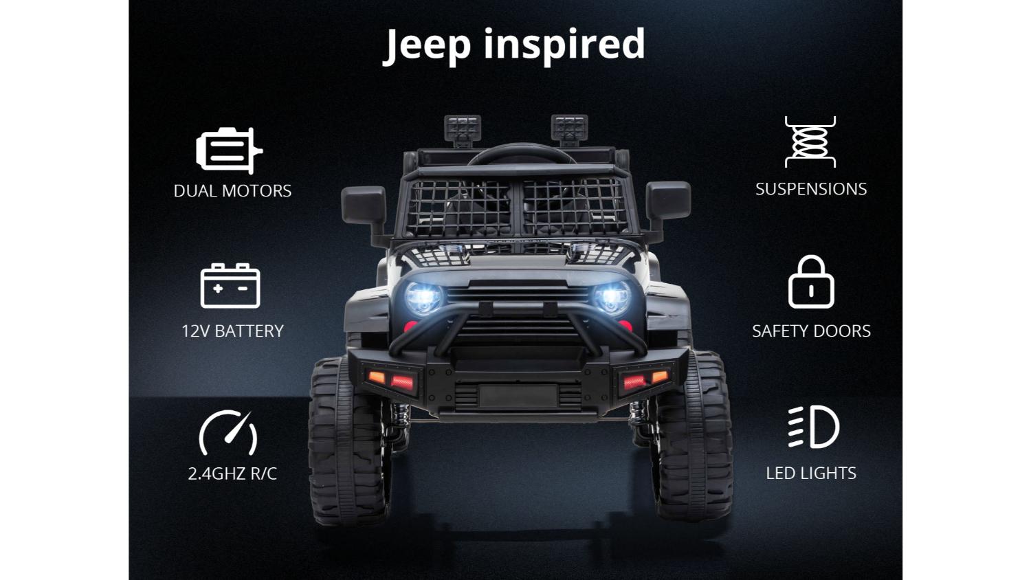 Let your child's imagination soar with the TSB Living Ride On Car Rugged 4WD Inspired! Packed with features like wheels suspension, a soft speed system, workable doors, and a sports seat with a safety belt, this vehicle offers an authentic riding experience. Enjoy safe, controlled fun with the remote control, and add to the excitement with flashing lights, horn, and MP3 connectivity.