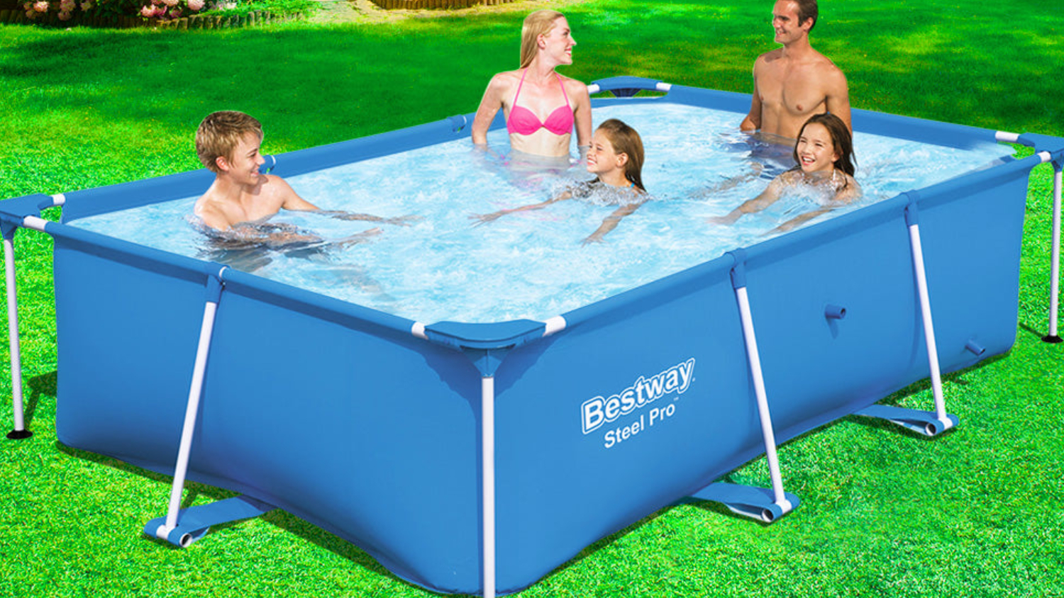 Make a splash this summer with the Bestway Steel Pro Rectangular Above Ground Pool. This pool boasts a durable, premium-grade TriTech material that resists UV rays and chlorine. It also has a rust-resistant frame and strong PVC side walls, while the built-in flow control drain valve makes draining hassle-free. Enjoy a pool that stands strong all summer, providing endless fun for the whole family!