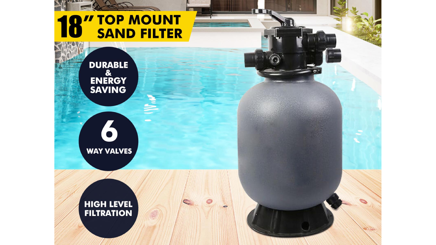 Keep your pool water crystal clear with the TSB Living Top Mountable Sand Pool Filter! Designed for easy operation and low maintenance, this high-performance sand filter is built with durable, colourfast thermoplastics and features a versatile six-position control valve for optimal flow and efficiency.