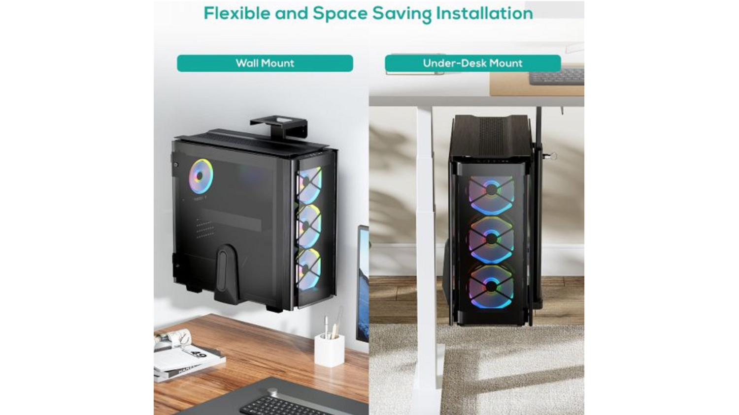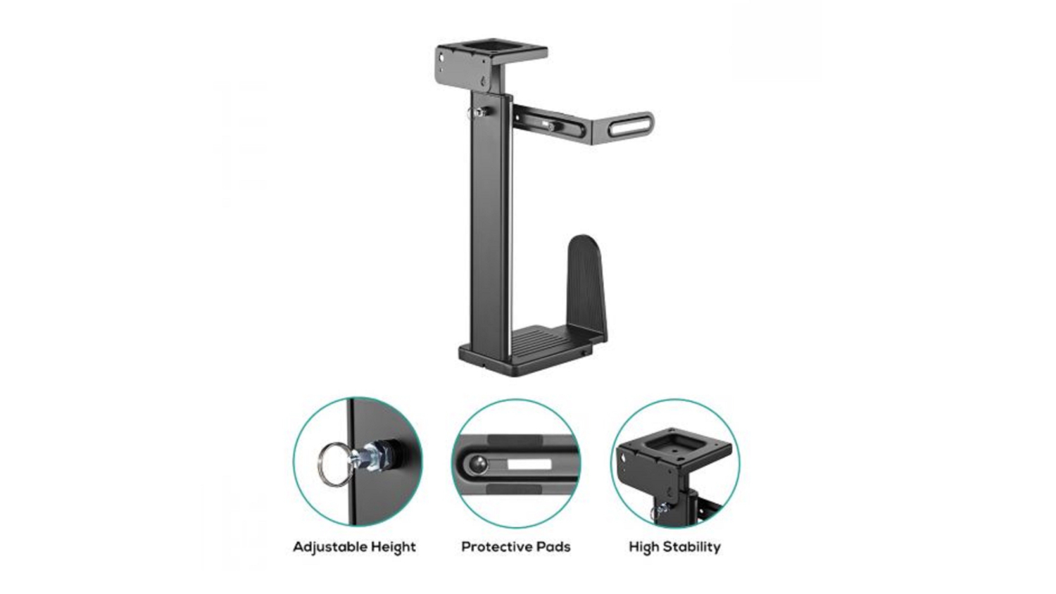 Meet the Activiva Under-Desk PC Mount—your ultimate space-saving solution. With step-less height adjustment up to 65cm and width adjustment up to 29cm, this unit accommodates from larger to wider gaming computers. Mount it under your desk or on the wall to save space in your working area. Plus, enjoy peace of mind with its 20kg weight capacity.