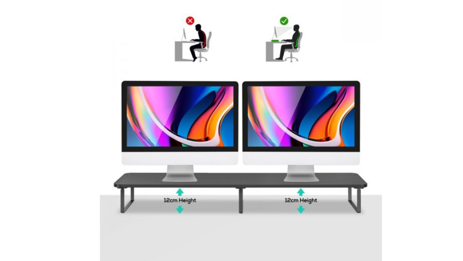 Level up your workstation with the Activiva Dual Monitor Riser. This smart riser fits two monitors or laptops perfectly and lifts them to eye level for better posture. It assembles effortlessly—no screws needed—and gives you bonus space underneath for organising your desk. With solid board construction and silicone pads for grip and scratch protection, it’s as sturdy as it is stylish.