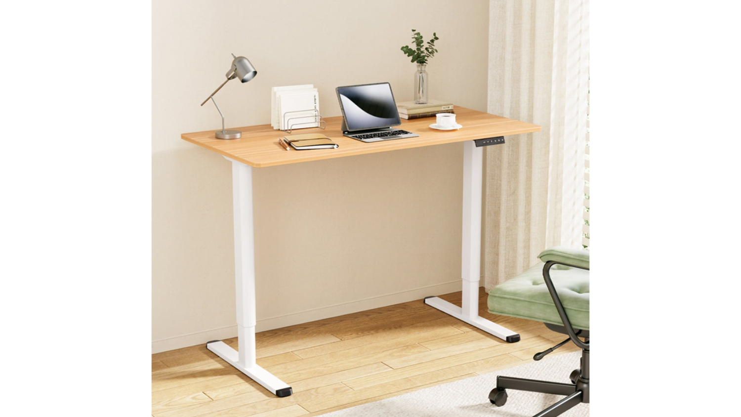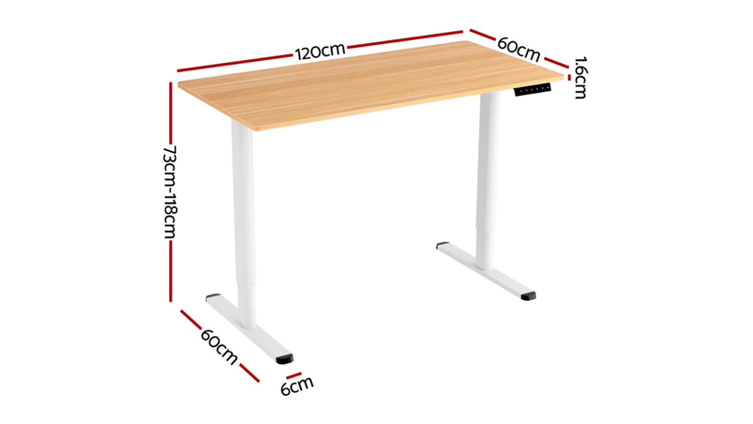 Artiss Adjustable Motorized Standing Desk 120 x 73-118cm - Natural Wood/White