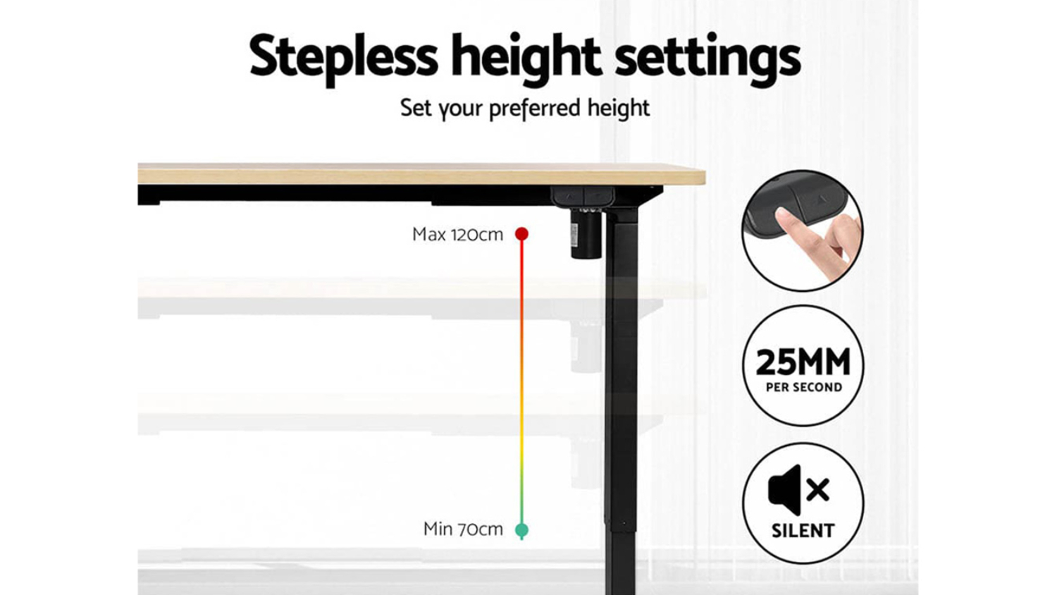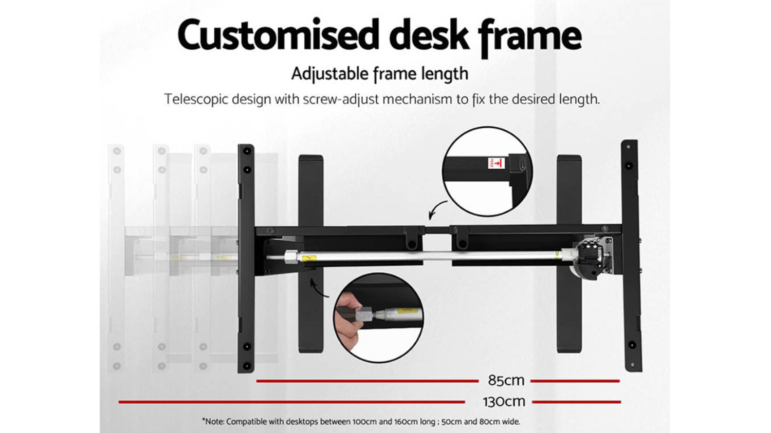 Take your home office to the next level with the Artiss Fully Adjustable Motorised Sitting/Standing Desk. Designed for flexibility, this table features a motorised height-adjustable frame, so you can stand and stretch as you work. The eco-friendly particleboard desktop has a sleek, anti-scratch finish and smooth edges for a premium look. Plus, it’s easy to clean, easy to assemble, and fits desktops from 100cm to 160cm. Stay active, stay comfortable, and work in style!