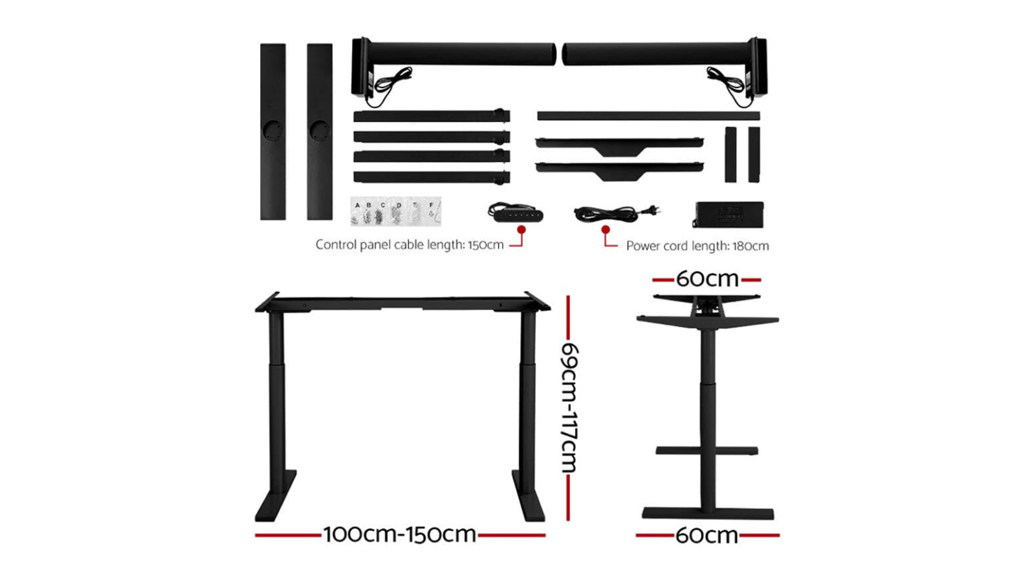 Take your home office to the next level with the Artiss Fully Adjustable Motorised Standing Desk. Designed for flexibility, this table features a motorised height-adjustable frame, so you can stand and stretch as you work. The eco-friendly particleboard desktop has a sleek, anti-scratch finish and smooth edges for a premium look. Plus, it’s easy to clean, easy to assemble, and fits desktops from 120cm to 170cm. Stay active, stay comfortable, and work in style!