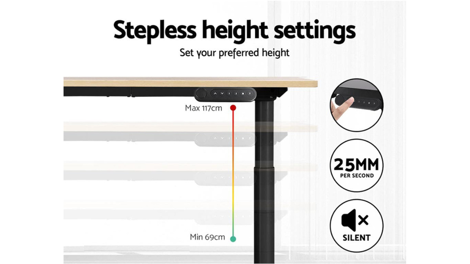 Artiss Fully Adjustable Motorized Standing Desk 140 x 69-117cm - Natural Wood/Black