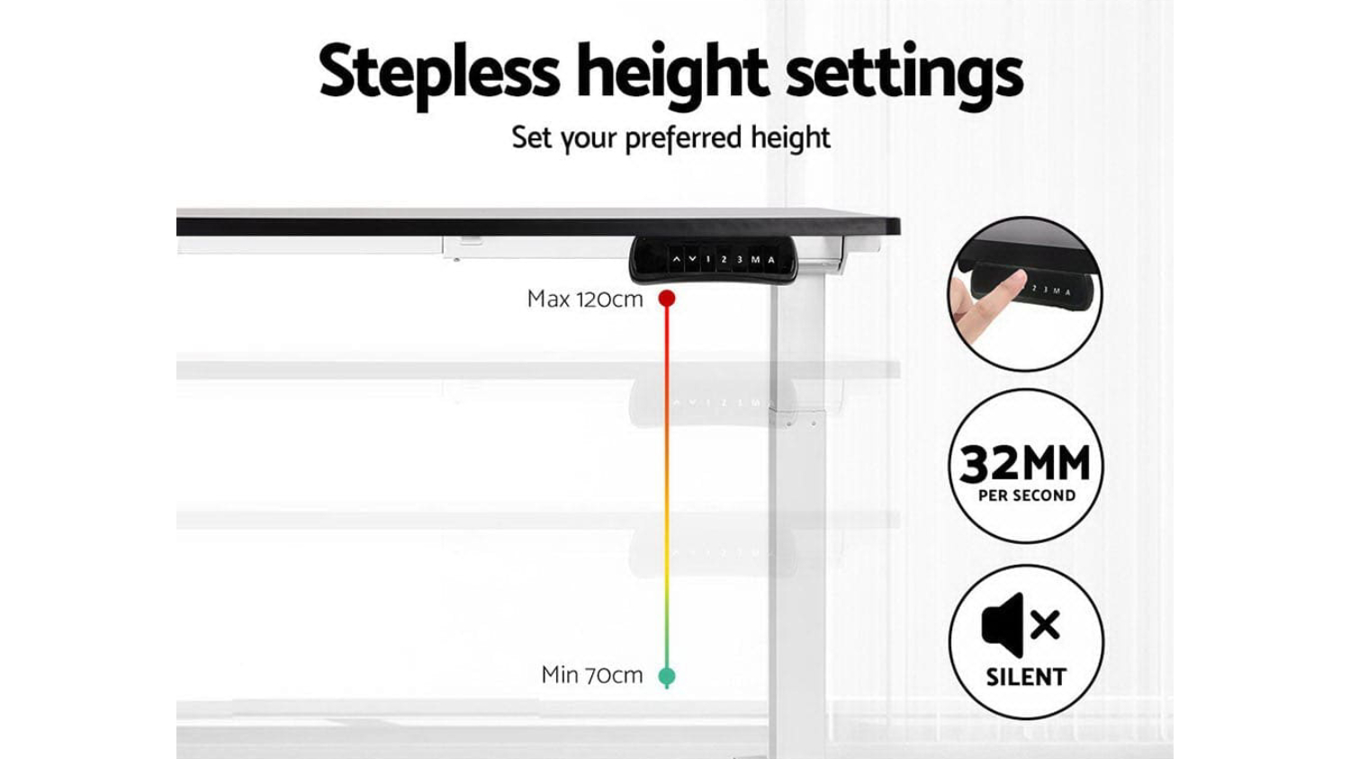 Take your home office to the next level with the Artiss Fully Adjustable Motorised Standing Desk. Designed for flexibility, this table features a motorised height-adjustable frame, so you can stand and stretch as you work. The eco-friendly particleboard desktop has a sleek, anti-scratch finish and smooth edges for a premium look. Stay active, stay comfortable, and work in style!