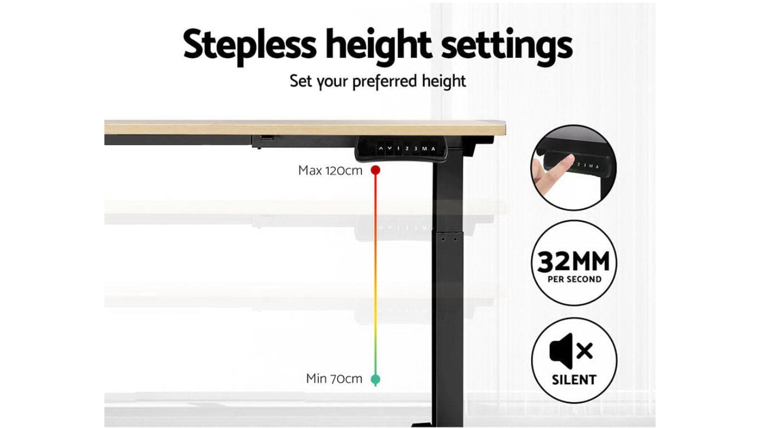 Take your home office to the next level with the Artiss Fully Adjustable Motorised Standing Desk. Designed for flexibility, this table features a motorised height-adjustable frame, so you can stand and stretch as you work. The eco-friendly particleboard desktop has a sleek, anti-scratch finish and smooth edges for a premium look. Stay active, stay comfortable, and work in style!