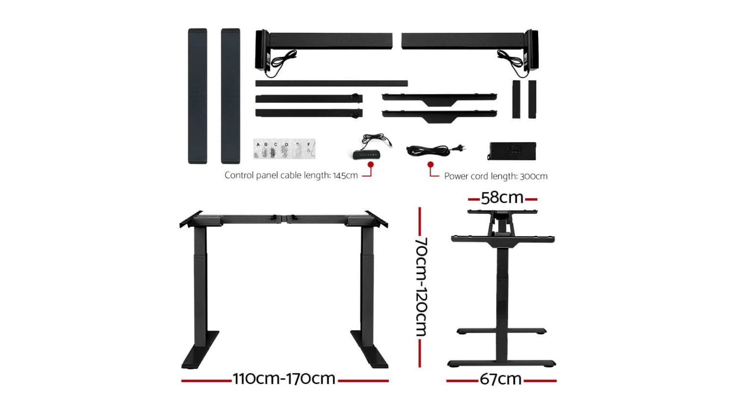 Take your home office to the next level with the Artiss Fully Adjustable Motorised Standing Desk. Designed for flexibility, this table features a motorised height-adjustable frame, so you can stand and stretch as you work. The eco-friendly particleboard desktop has a sleek, anti-scratch finish and smooth edges for a premium look. Stay active, stay comfortable, and work in style!