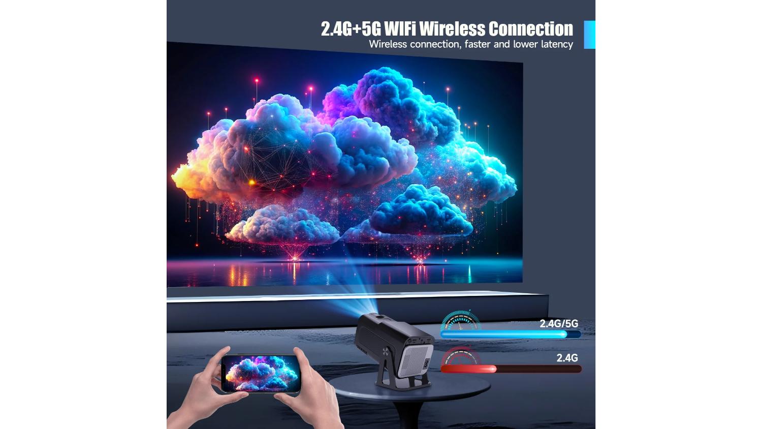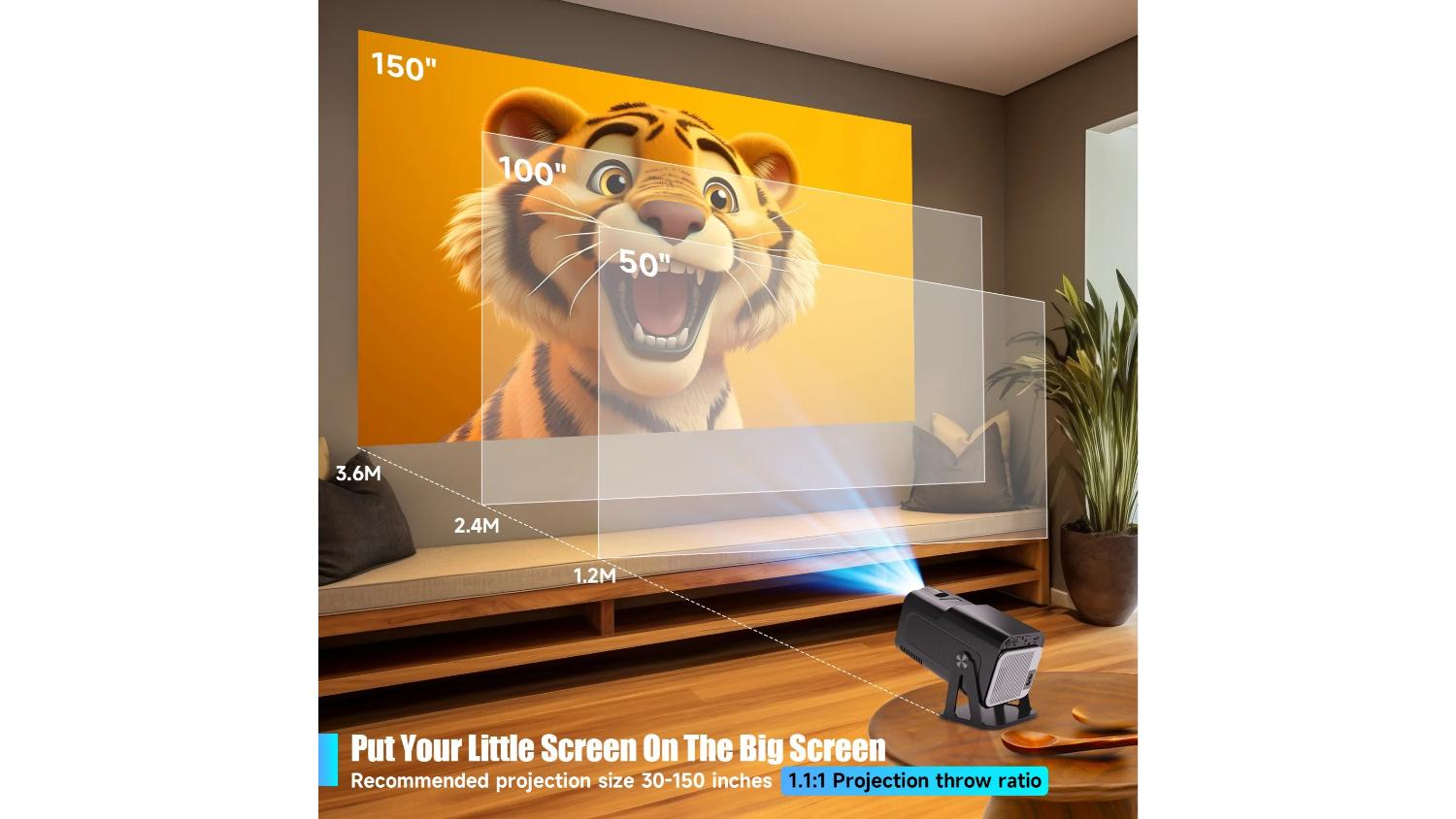 Stream your favourite shows and movies with the Magcubic HY320 NTV 1080p Portable Projector with Built-In Streaming Apps. Designed for portability, this unit combines native 1080P clarity, 500 ANSI lumens, and a long-lasting LED light source for vivid visuals up to 200 inches. Android 13 with official Netflix licensing lets you watch without dongles, while dual-band WiFi, Bluetooth 5.2, HDMI, and USB provide flexible connectivity.