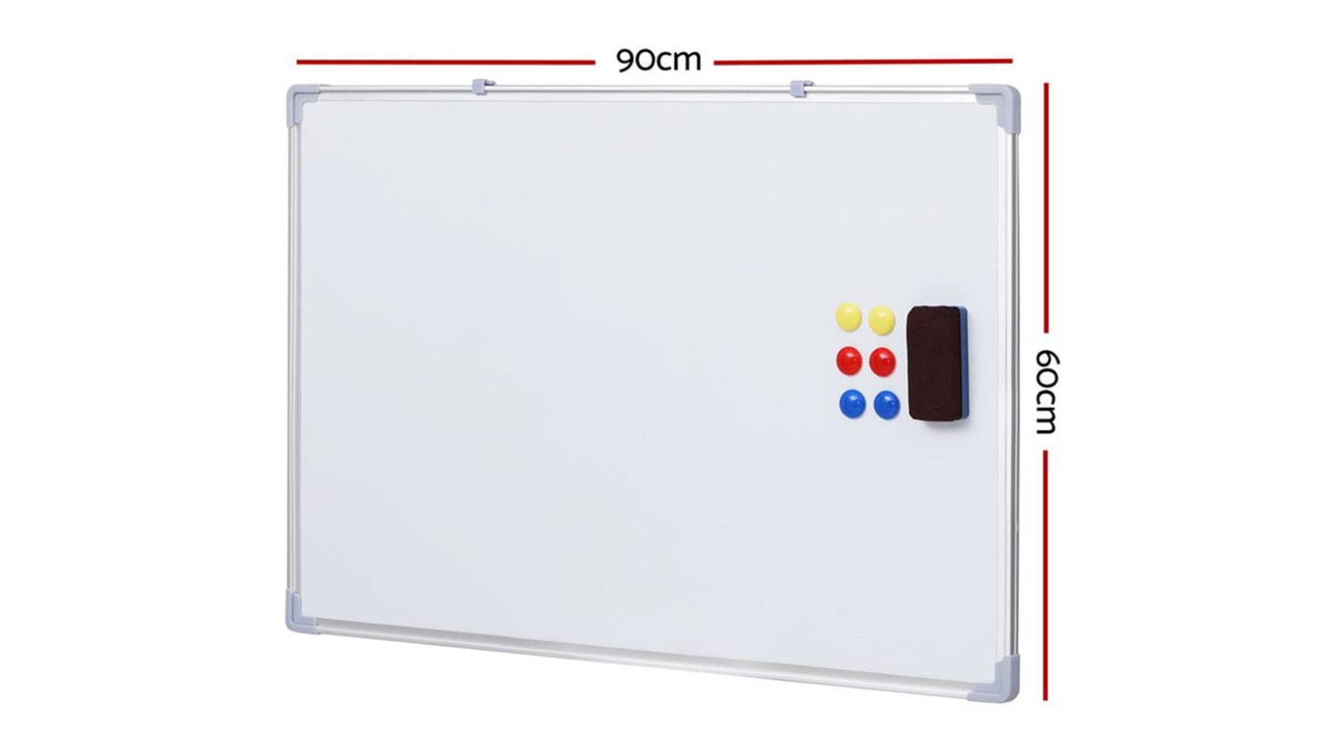 Magnetic Whiteboard with Marker Tray, Magnets 90 x 60cm