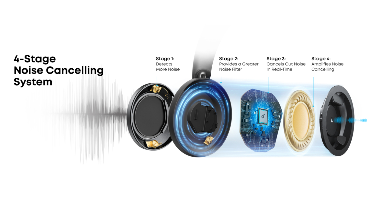 Listen to your favourite tunes on the go with the Soundcore Space One Wireless Over-Ear Headphones. Compact and ergonomic, this device boasts a Soundcore-Engineered FlexiCurve™ Structure that is suitable for all-day comfort. It also incorporates an exclusive 4-stage noise-cancelling system and drivers with triple composite diaphragms, letting you enjoy hi-res and distortionless audio every time.