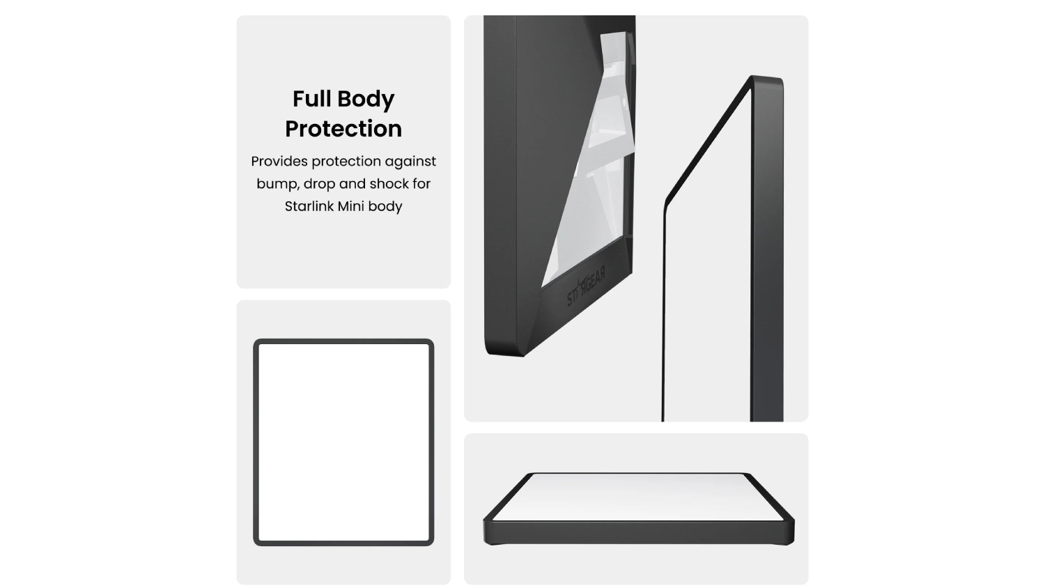 Keep your Starlink Mini safe and stylish with the STARGEAR Mini Silicone Cover! This premium cover is made thermal and weather-resistant for ultimate protection against impacts and damage. It also highlights a matte black, non-slip finish, ideal for versatile installations, including on-dash. Enjoy easy, slim-fit protection that seamlessly integrates with your dish, ensuring full use of all ports and mounting options.