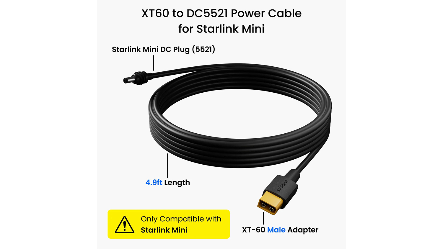 Ensure stable power for your Starlink Mini with this STARGEAR Mini XT60 to DC Power Cable 1.5M. Crafted with high-quality 16AWG cable, this cable ensures optimal current flow, significantly reducing resistance and heat loss. Its robust design allows stable and efficient power, keeping your vital internet connection live wherever your adventures take you.