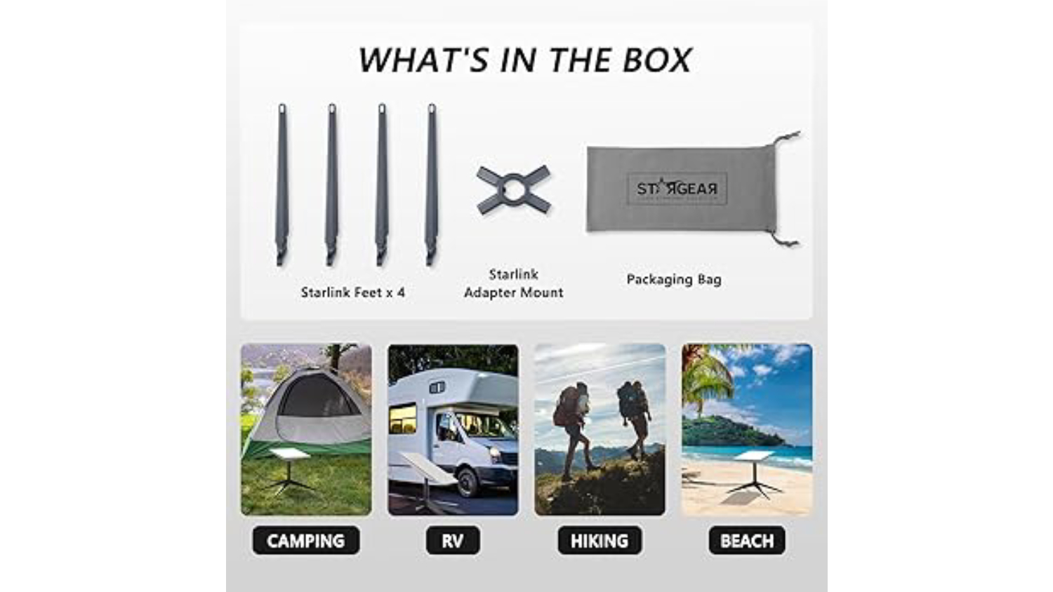 Enjoy a reliable installation with the STARGEAR Starlink Gen2 Collapsible Stand. Designed as a superior replacement for the Starlink rectangular satellite v2 base, this stand provides incredible support for your Starlink standard actuated dish when camping, RV, hiking, and travelling.
