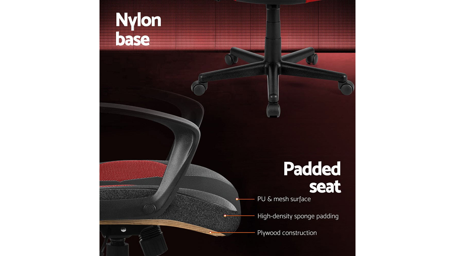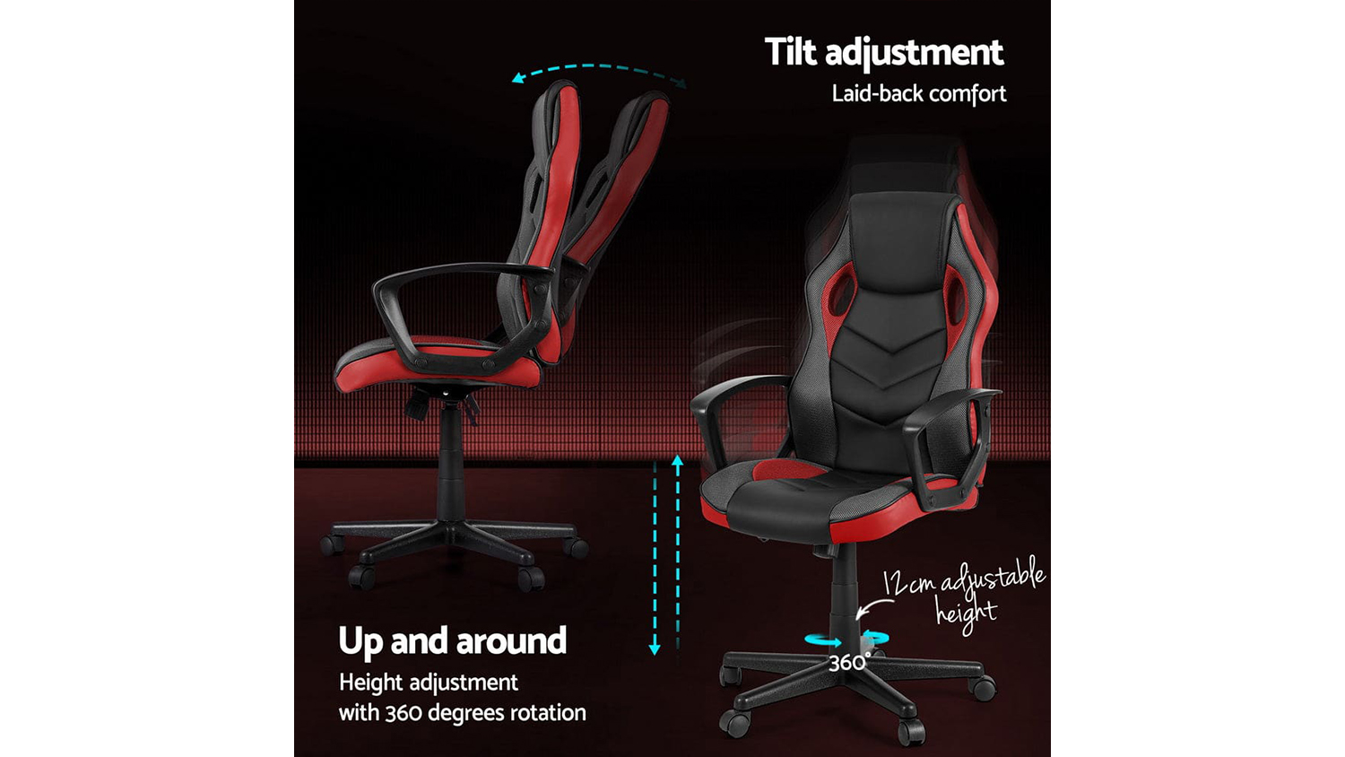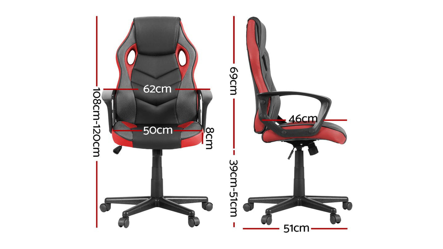 Artiss Adjustable Office Gaming Chair - Black/Red