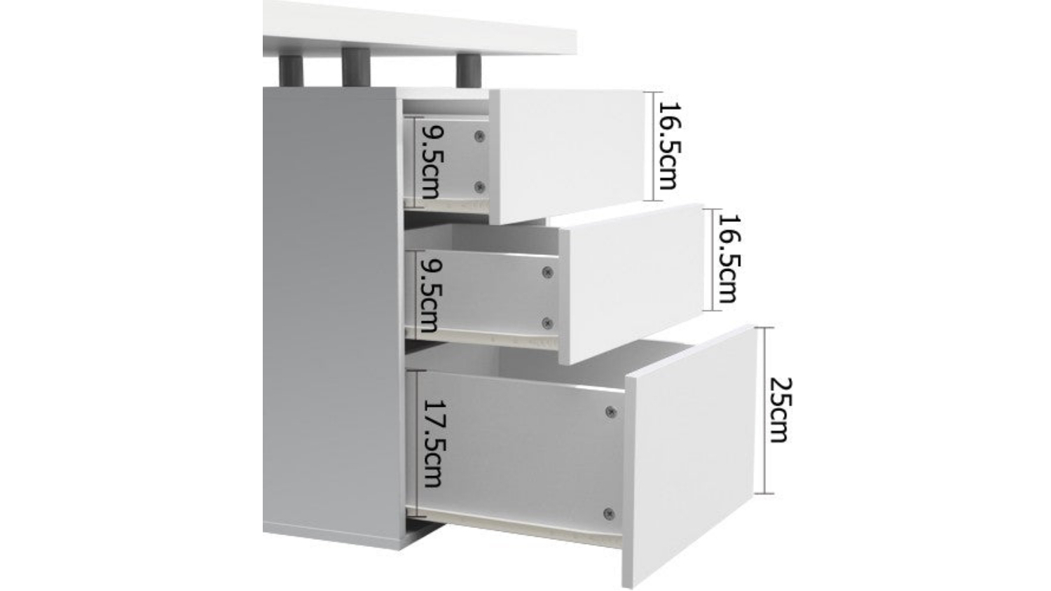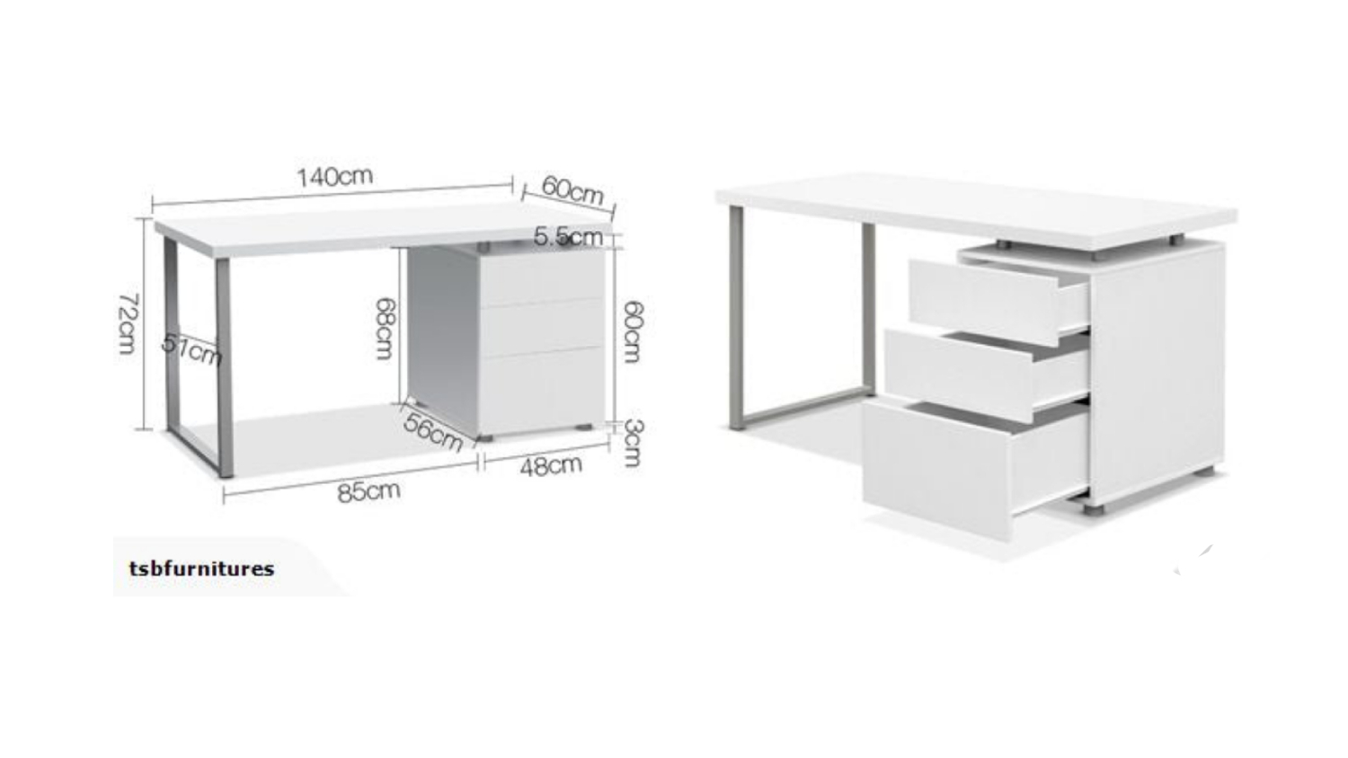 Upgrade your workspace with the TSB Living Katrina Metal Frame Desk with Drawers. This chic 140cm table features a robust reinforced veneer particle board construction and a rust-resistant U-shaped metal leg. Assemble it effortlessly to keep your workspace organised and clutter-free.