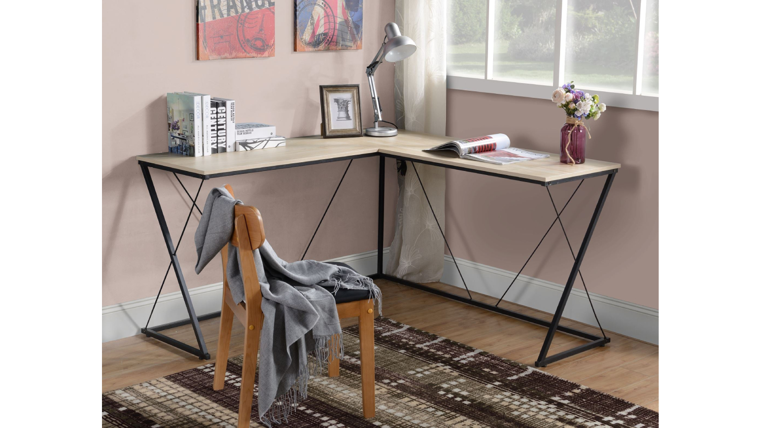 Maximise your workspace with the TSB Living L-Shaped Metal Frame Desk. This sleek and contemporary desk provides ample surface area for your computer, books, and other office essentials, while its L-shaped design fits snugly into corners, saving valuable floor space. Constructed from durable particle board and sturdy metal legs, this desk is built to last and enhance your productivity.