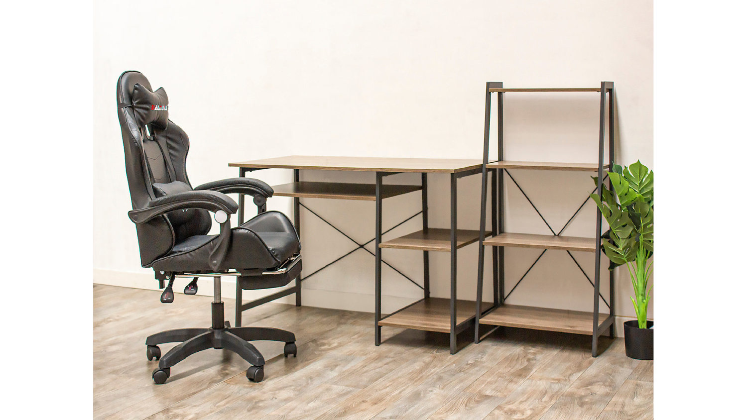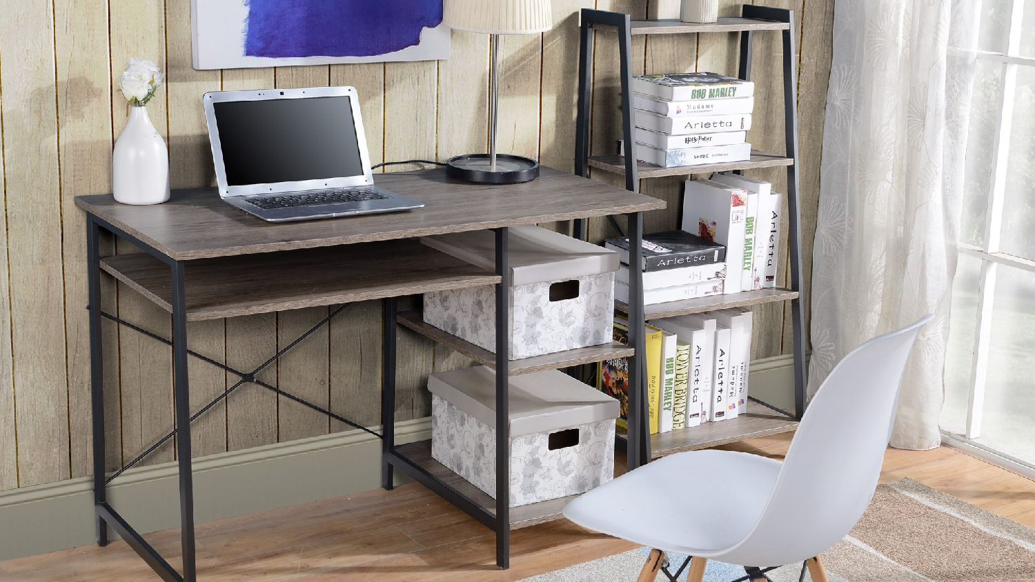 TSB Living T Metal Frame Desk & Bookshelf Set