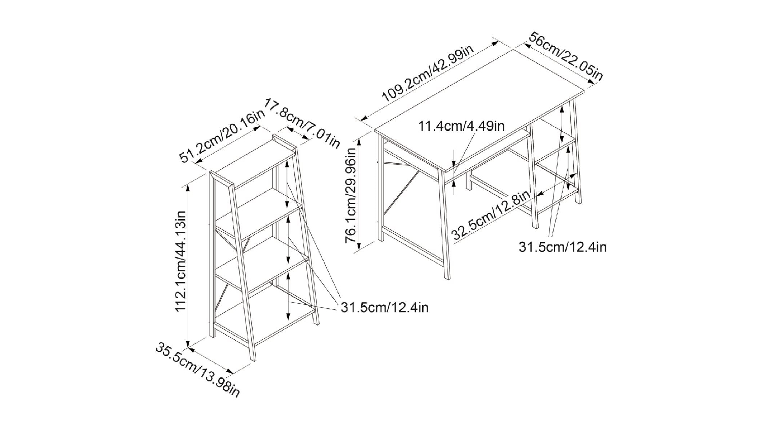 Upgrade your workspace with the TSB Living T Metal Frame Desk & Bookshelf Set. Built with metal framing, high-grade particle board, and durable laminate, this set brings form and function to any space. It also boasts open shelves and a 4-tier ladder bookcase, providing ample storage.