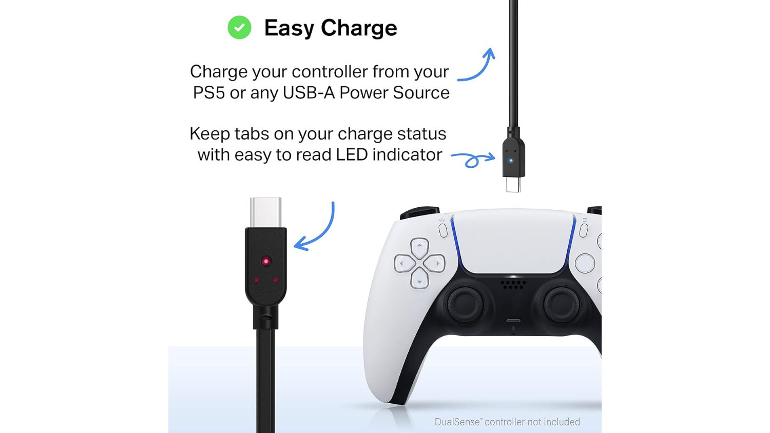 Power up your PlayStation 5 DualSense controller with the Nyko Charge Link USB to USB-C Cable. This 8-foot cable gives you rapid charging from any USB port. Plus, the built-in LED indicator keeps you in the loop on your battery status. It’s also compatible with other USB-C devices and includes a handy Velcro wrap for clutter-free storage. Level up your gaming setup today!