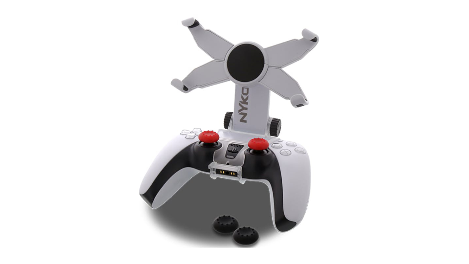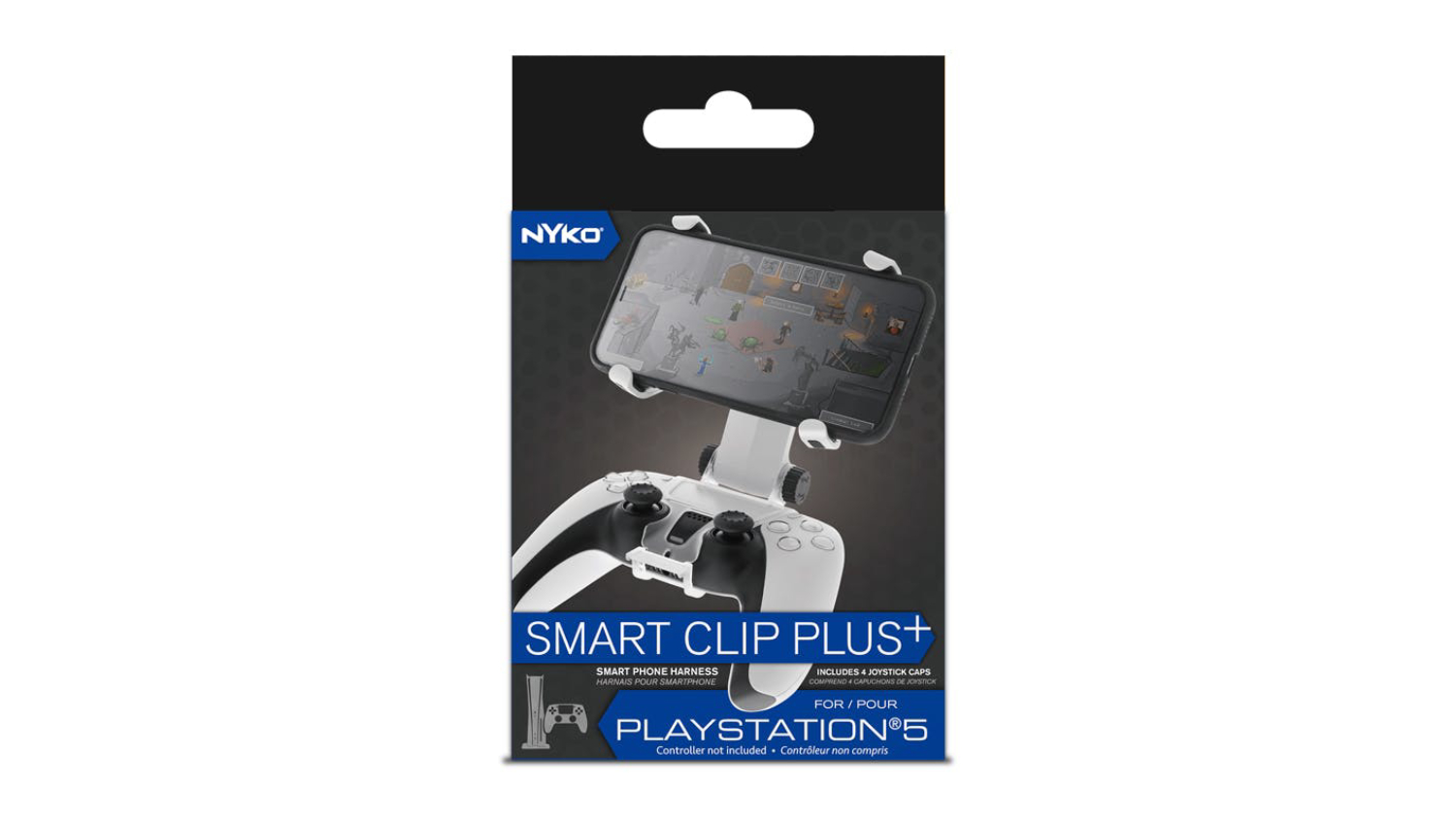 Experience a new level of gaming with the Nyko PS5 Smart Clip! Perfect for dedicated gamers, this handy accessory enables you to attach your smartphone to your DUALSENSE controller seamlessly. It also offers customisable viewing angles and 2 thumbstick caps for convenient playing however you want.