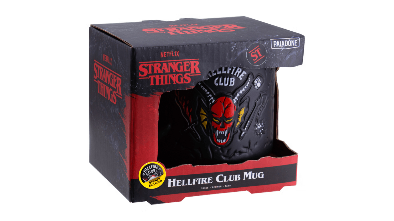 If you're a fan of the iconic supernatural show, the Paladone Stranger Things Hellfire Club Mug is the perfect addition to your collection! This mug is inspired by the infamous Hellfire Club from the hit Netflix series and features a bold black design with the club's iconic logo. Whether you're a coffee drinker, tea sipper, or hot cocoa lover, this mug is the perfect choice for your favourite beverage.